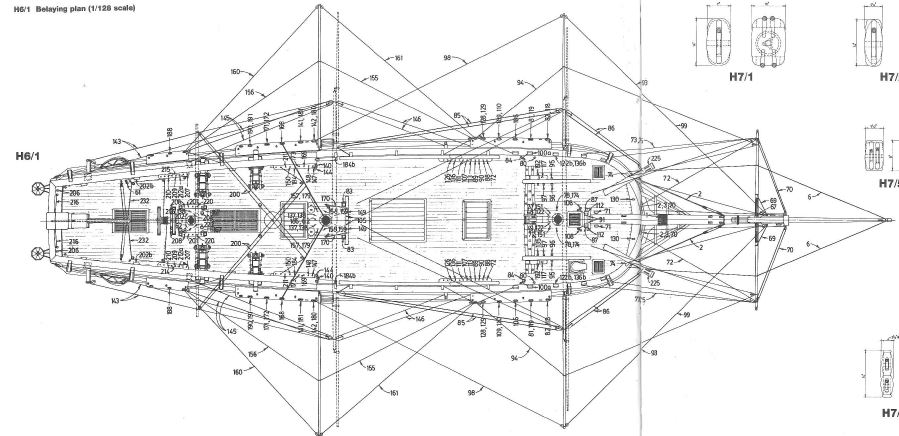 и представьте себе такелаж по правилам.... я заведомо на Баунти Романа делал штаги толще, иначе они смотрелись ниточками и любая снасть их бы оттягивала,.