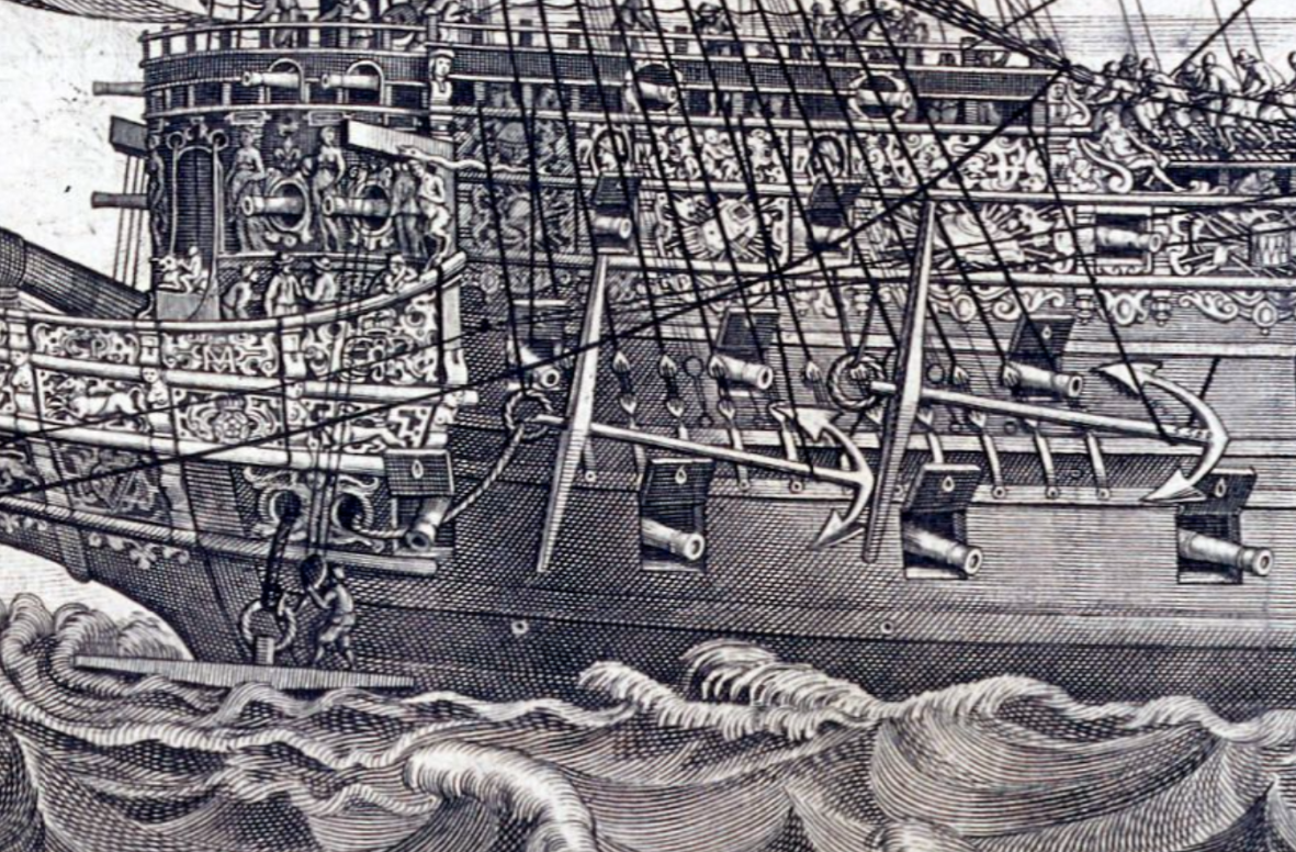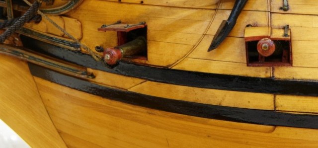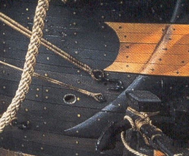 всё - лишь имитация на реплике и вряд ли работает - даже по отсутствию оплётки на рымах якорей понятно, что на якоря поставить данную реплику невозможно по-настоящему