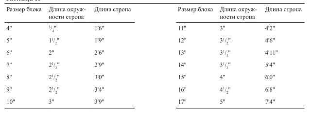Для удобства, вот стропы для блоков, из Стила, собранные в одну таблицу. На длину стропов можно сразу не обращать внимания, там разлёты в цифрах мама дорогая.