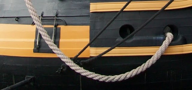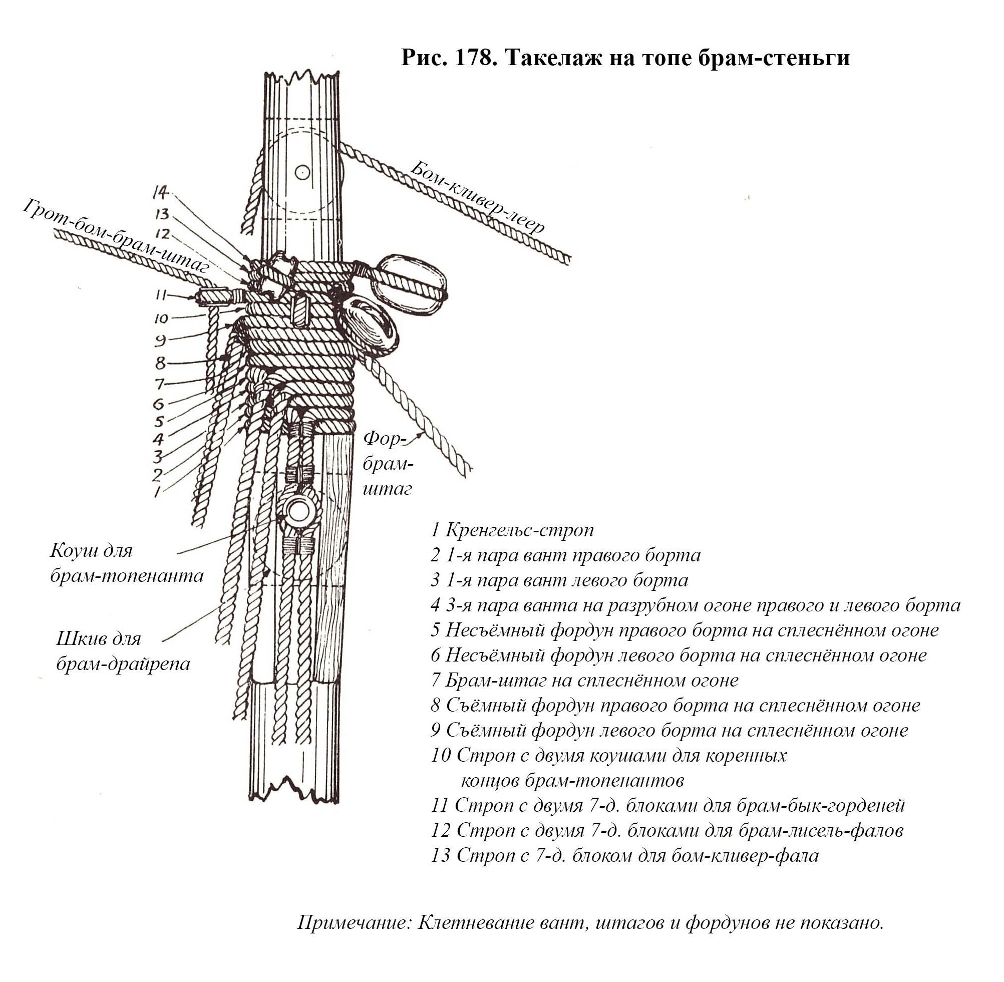 Ну, а коуши по краям штерта, это тоже "на выбор" - нижний, понятно, чтобы подвязать штерт к кат-блоку с помощью "промежуточного" тонкого стропа - после воды его легче разрезать, это лучше, чем портить штерт. На малых кораблях этим коушем можно пренебречь, думаю, на Баунти штерт коуша на конце не имел и просто подвязывался к гаку кат-блока в районе шейки гака. Второй коуш - для вспомогательных талей для работ на форкастле, для Баунти им тоже можно пренебречь, просто удлиннив штерт.