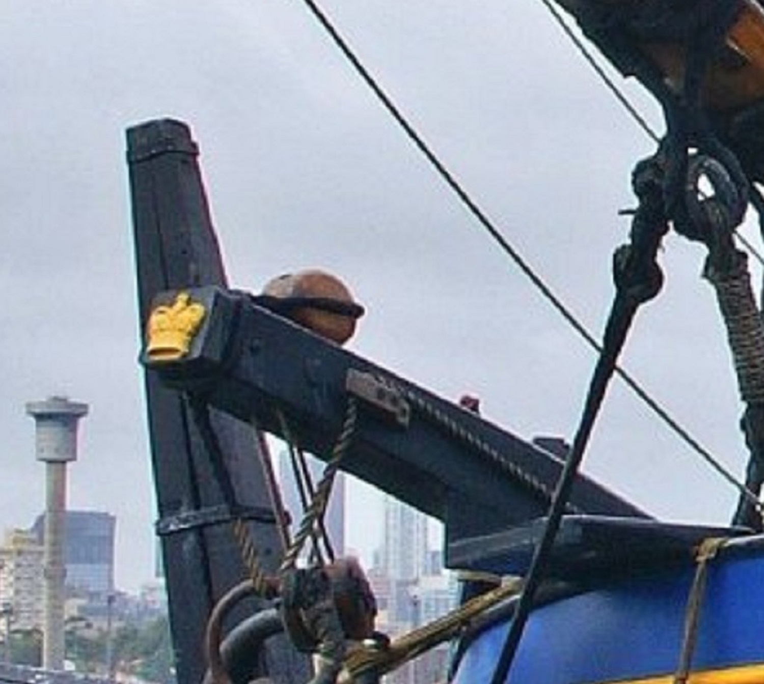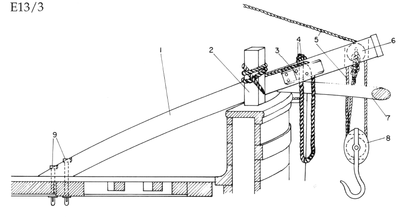 да и - я уже говорил, - невозможно сразу наличие гака кат-блока и пертулиня, одновременно заведённых на рым якоря - они служат как раз как замена друг друга на разных этапах работ с якорями.