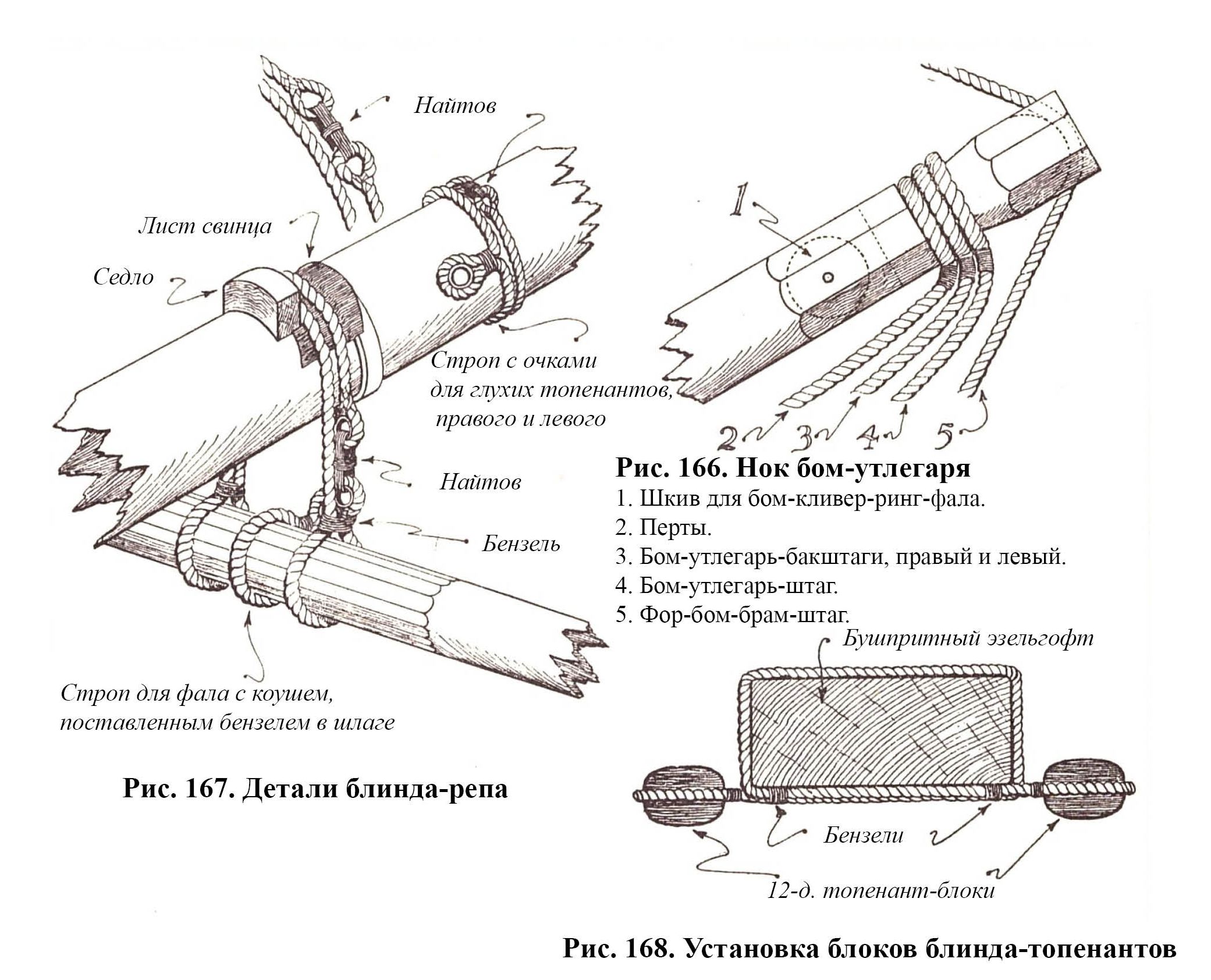 Логика понятна, но зная о том, что во многих источниках дохрена ошибок буду всё же уточнять с твоего позволения. В части рымов в кат-балке (точка крепления блока фока-галса и коренной конец кат-тали) коуши не использовались. Размер внутренней части рымов чуть больше сопряженный снастей (3 - 3,5 дюйма (0,6мм)).