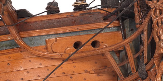 Отверстие для ватервулинга располагалось между первым и вторым шпангоутами гальюнной решетки, считая от носовой фигуры.