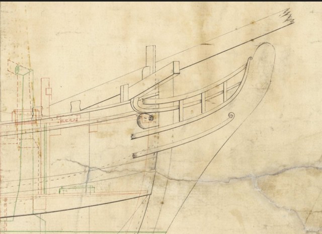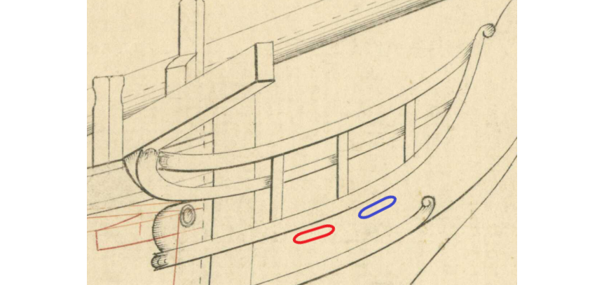 Так ладно музейные модели, и на чертежах тоже нет, вот как на примерах чертежей в сообщениях ранее. Буковые планки заменяли собой свинец, всё равно получивший со временем всеохватывающее применение в клюзах. Но что это были за корабли, что это были за клюзы, в этом собака как раз и зарыта.