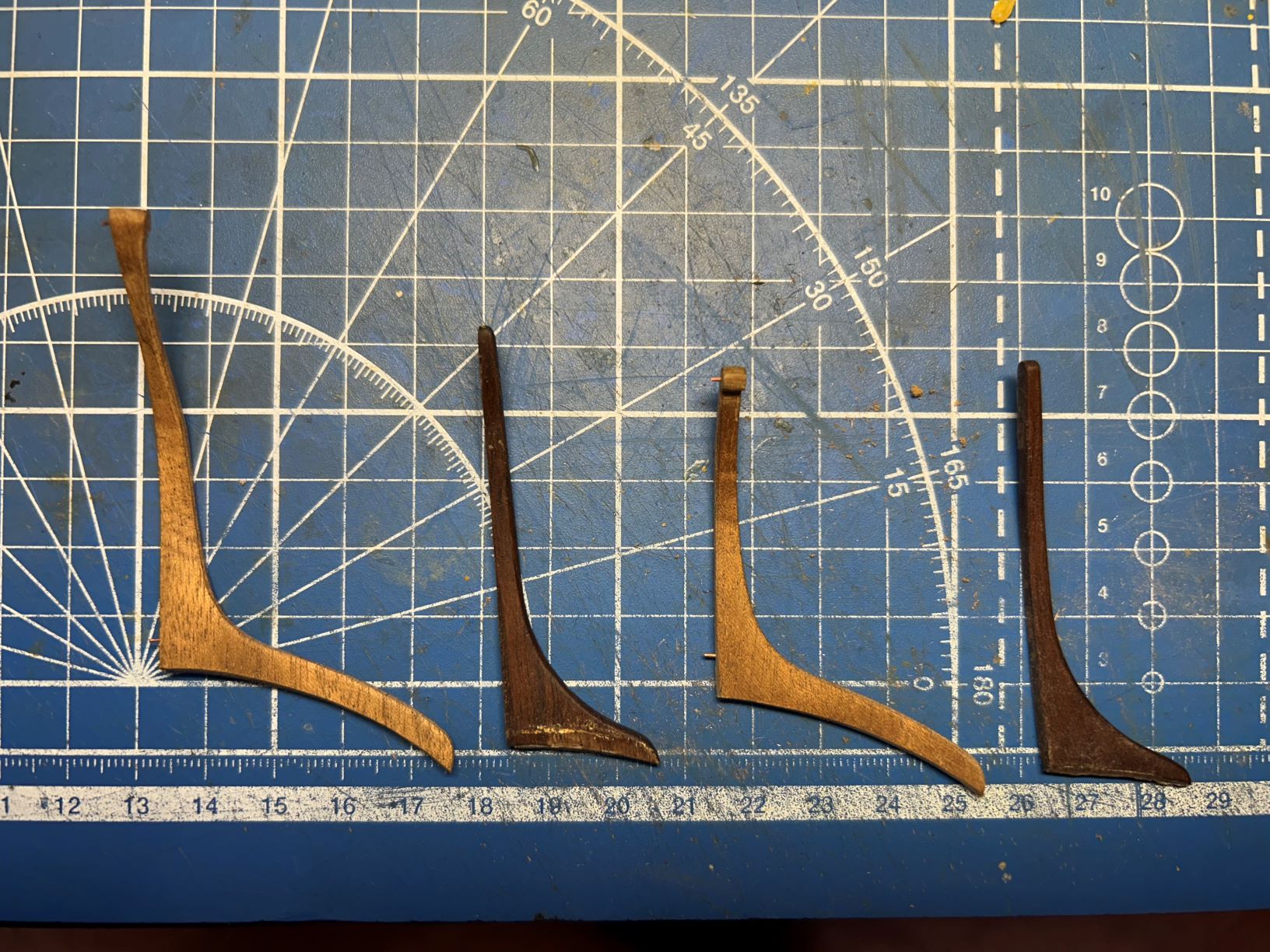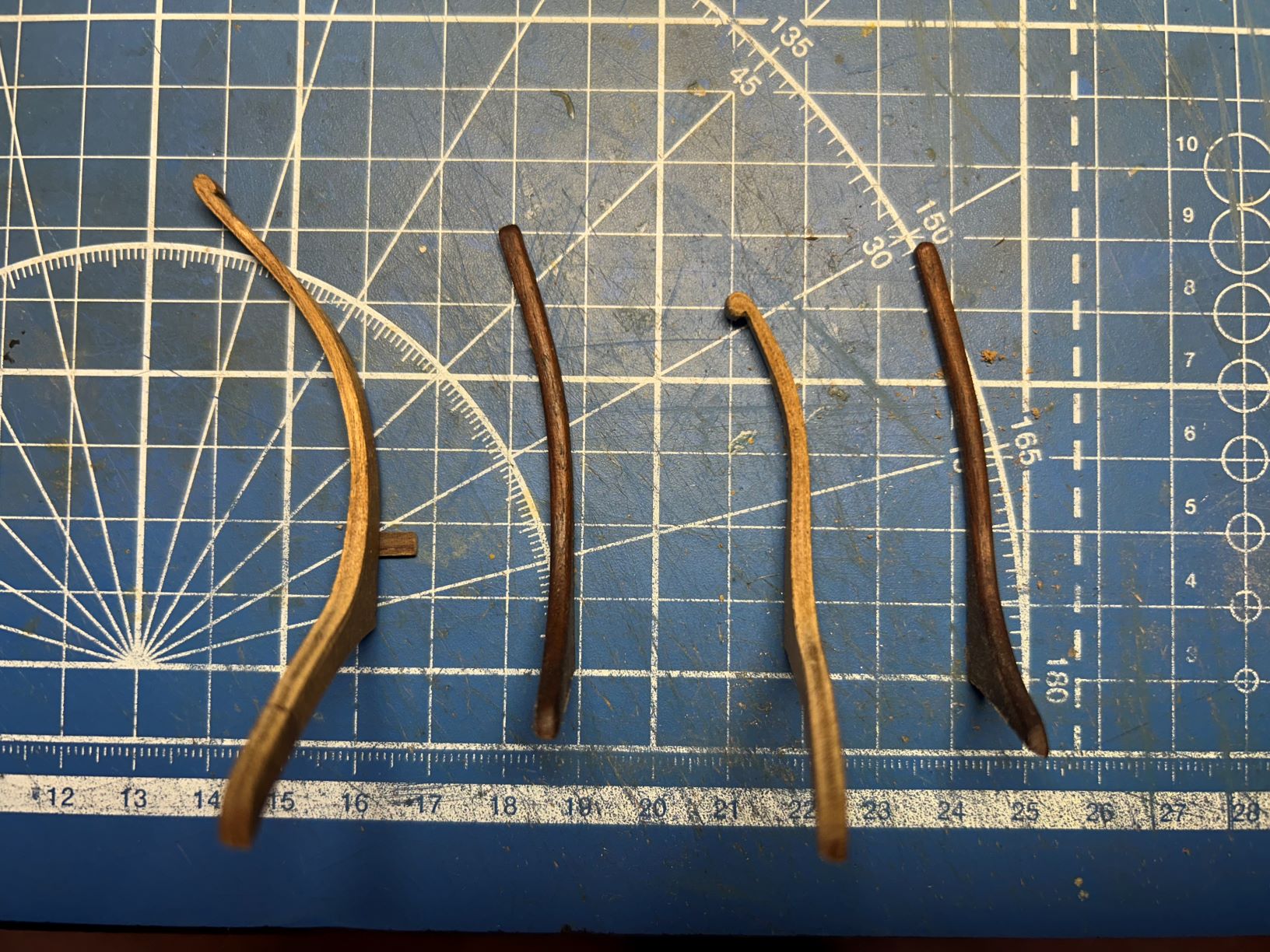Следующий элемент - невельвудс. Выполнил его из рейки размером 8х1,5мм. Долго думал каким сделать край: так как на большинстве моделей (см. фото) или сделать максимально похожим как на архивном чертеже (кстати и такой вариант на моделях встречается хоть и реже). Пошёл по пути чертежа (не знаю правильно ли). Далее стало понятно, что конструктивно требуется установка подклюзовой губы так как остаётся достаточно большой выступ руки чиксы, что будет приводить к перетиранию каната. На архивном чертеже подклюзовой губы нет. Игорь, это возможное упрощение чертежа или мне необходимо корректировать толщину руки чиксы или невельвудса?