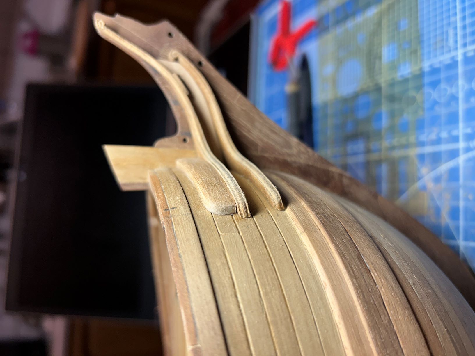 Прежде всего переделал доску-усилитель и скорректировал паз под ватер-вулинг согласно информации от Игоря выше (она как всегда полностью подтвердилась). Валик получился более похожим как на чертежах и моделях, так как толщина руки чиксы в этом месте меньше - всё встало на свои места.