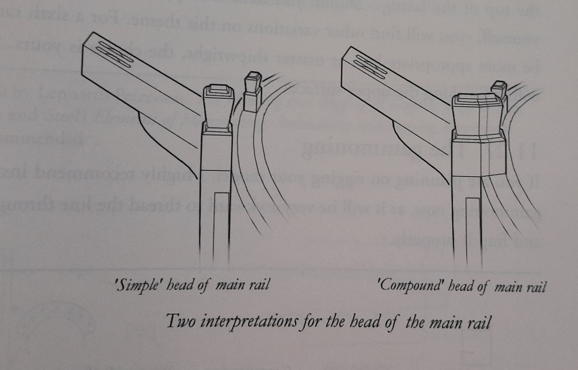 На чертеже Бетии/Баунти мы не имеем ни фальш-реельса ("треугольник" фальш-реельса обычно служил защитой от ветра для стульчака отхожего места), не имеем ни топа верхнего регеля, ни показанного фасона сечения уса регеля. Но мы имеем отлично видный фасон на краю регеля. По правилам тех лет, у регелей, реельсов (особенно реельсов!), книц, сапортусов, стандерсов, чикс, при наличии фасонной поверхности, на концах этих деталей показывалась форма сечения, фасон, - так было лучше, чем вариант вынесения за чертёж сечения или изображение оного на самой детали, по современным правилам. Когда знаешь такие нюансы, читать старые английские чертежи вообще не проблема.