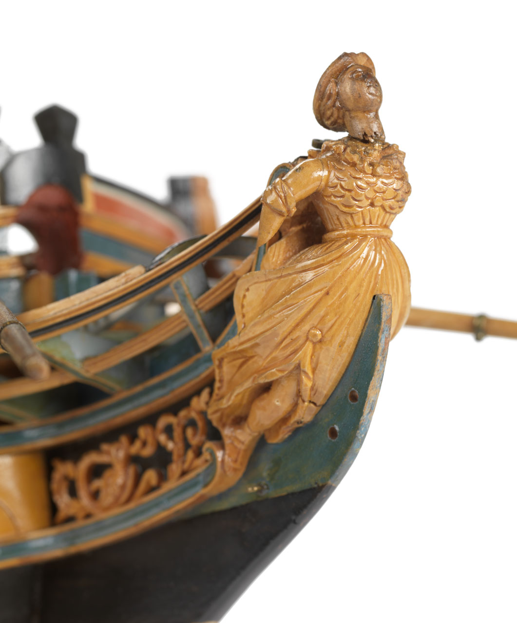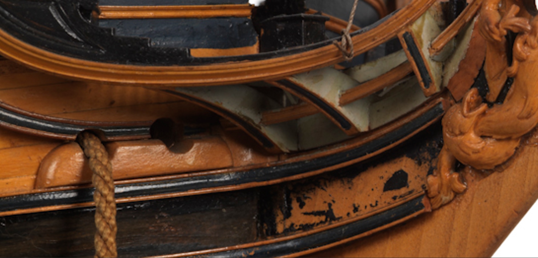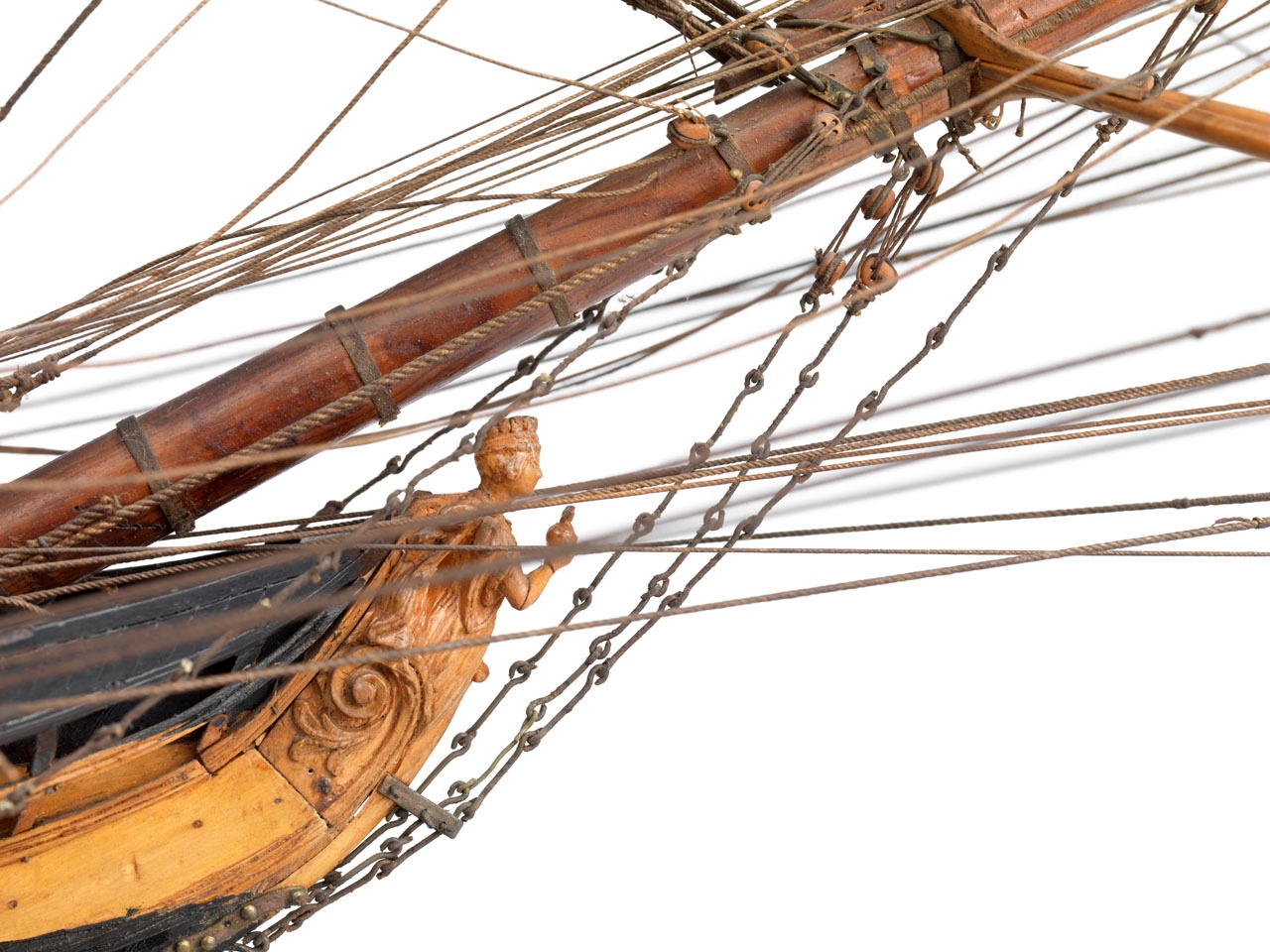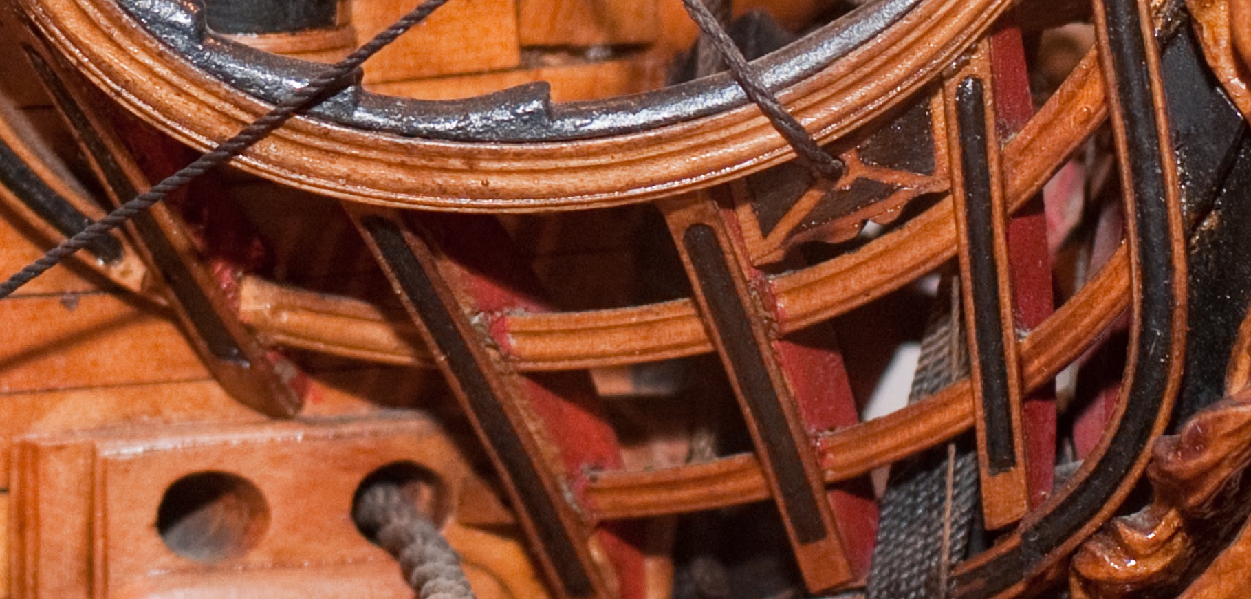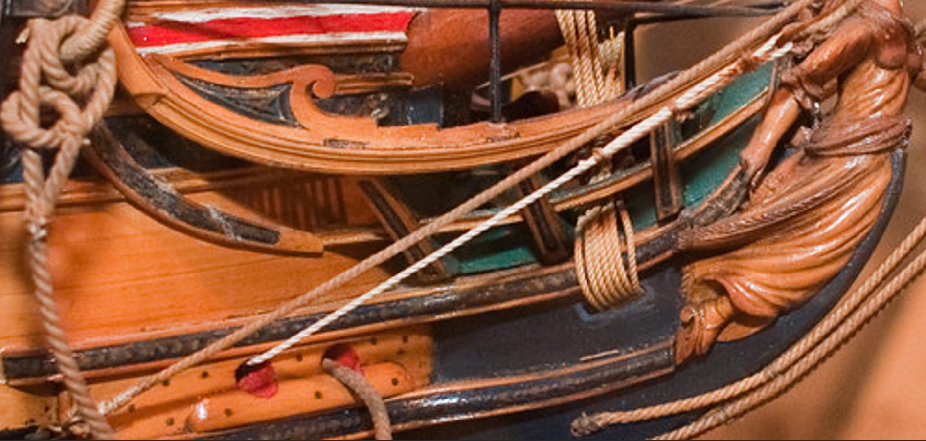 В том то и дело, что на одних чертежах рисунок есть, на других - нет. И можно было бы подумать, что эти чертежи также упрощены как и чертёж Баунти, но при этом на них присутствуют другие украшения в том числе и носовые фигуры. Также просмотрев множество музейных моделей я обнаружил, что и на них есть накладки шпангоутов без рисунка. Привожу несколько примеров, хотя и согласен, что большинство моделей имеют рисунок. С другой стороны Баунти довольно скромный проект, может и действительно не было никаких укрошательств в этой части?
