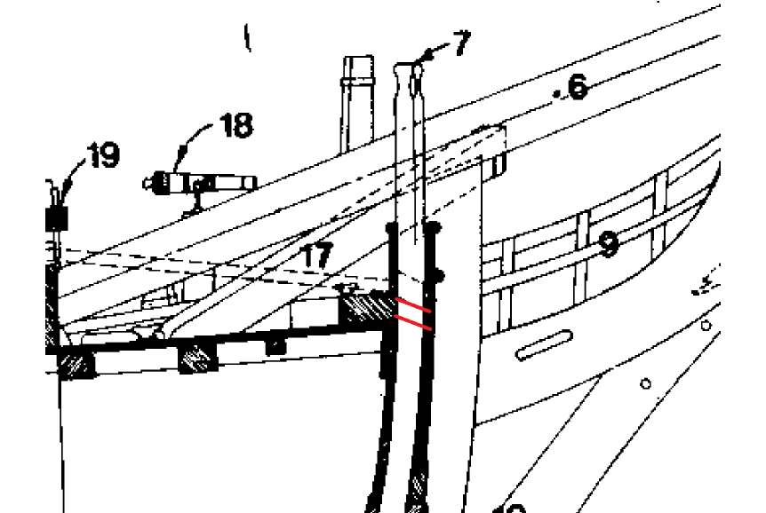 Расстояние между карлингсами должно быть не меньше ширины форштевня в месте предполагаемого пересечения (но не княвдигеда, который в этом месте как раз немного тоньше ф-шт). Поэтому к музейным моделям доверия больше. К сожалению, я не знаю, откуда Антшерл брал вдохновение для проектирования своей решётки гальюна.