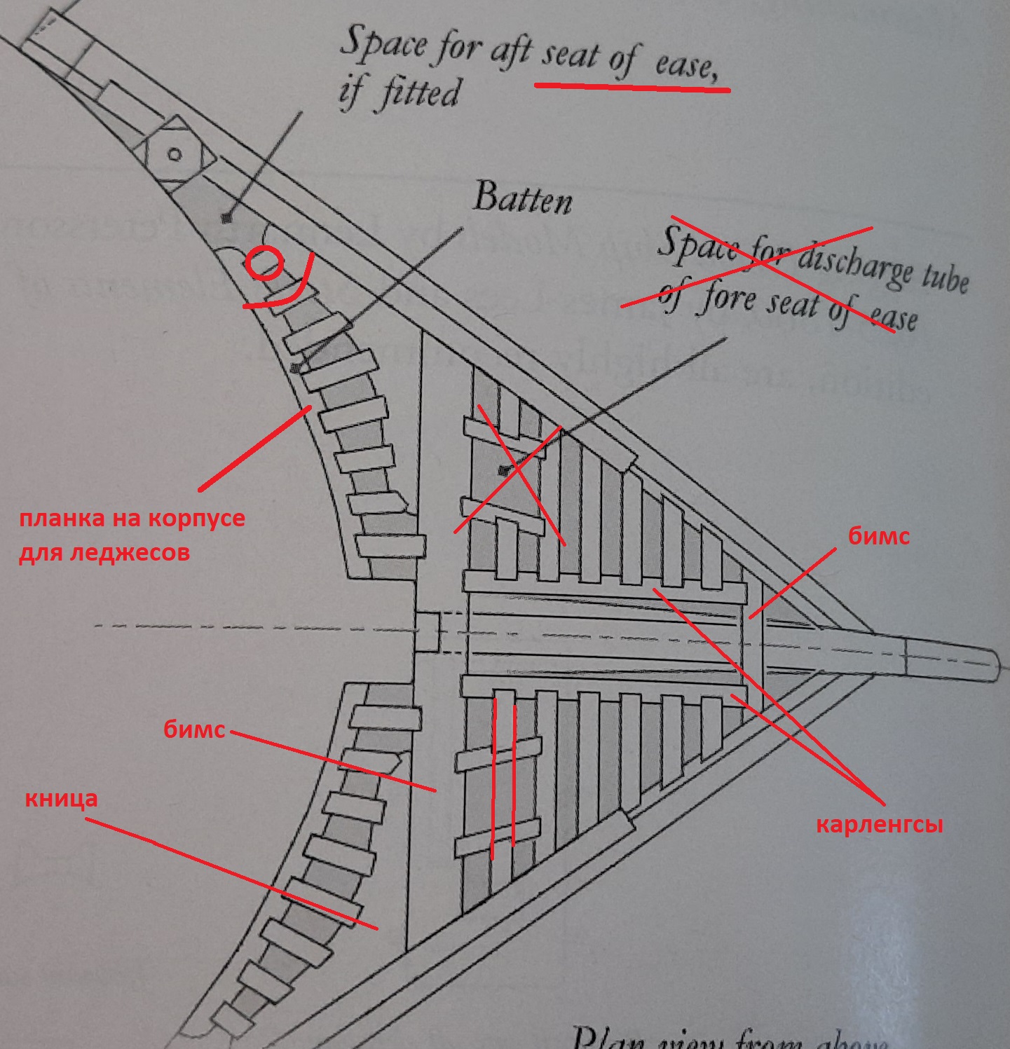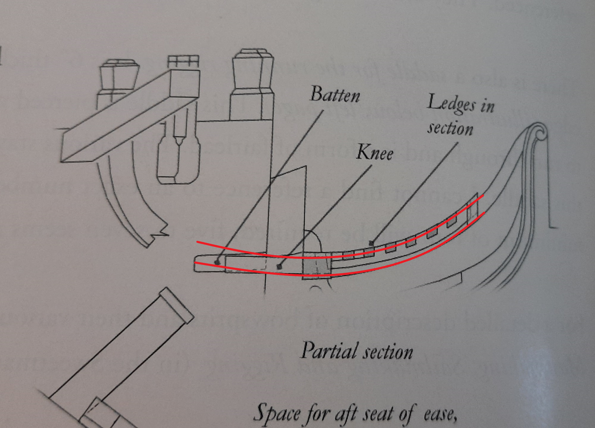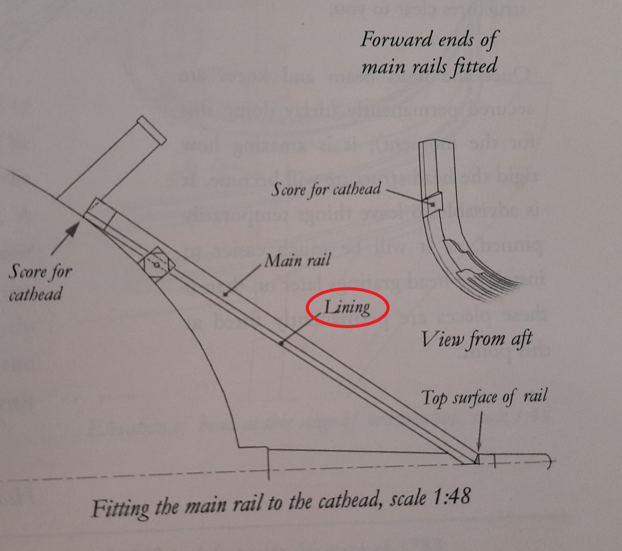 на самом деле, этот бимс, как и всё остальное, находится в пределах "Lining"-а. Этот так называемый "Lining" - часть регеля, то есть, сам регель и есть, но здесь гребёнка - выдолблены пазы под установку элементов решётки гальюна - бимсов и леджесов. Такие же зубчатые пазы на кницах.