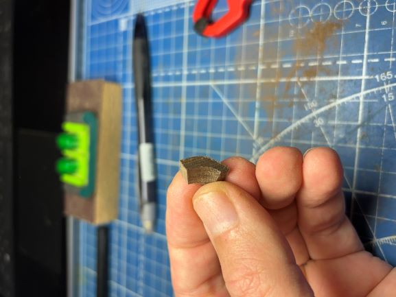 Я рекомендую пропитывать такие детали супер-клеем. Но уже не гелем, а как раз самым текучим, секундным. Как и в прошлый раз, насыпем на клей, пока не застыл, пищевую соду. Когда застынет, на детали будет "стеклянная" поверхность. Счищаем самой мелкой наждачкой и доводим до ума. Красим. Вуа-ля! - деталь становится как камень.