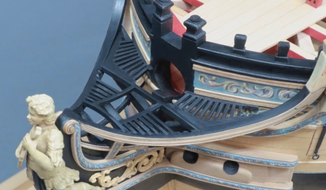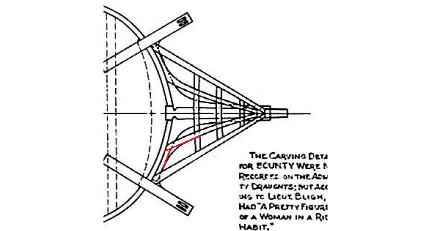 я уже сто раз говорил, почему "ничего такого" на чертежах Баунти нет, и что из-за этого сама по себе идея постройки достоверной модели Баунти невозможна в принципе, потому что ключевые характерные индивидуальные особенности корабля, как-то носовая фигура, квартописы, украшение гакаборта, накладки фашенсписа, на архивных чертежах опущены по понятным причинам.