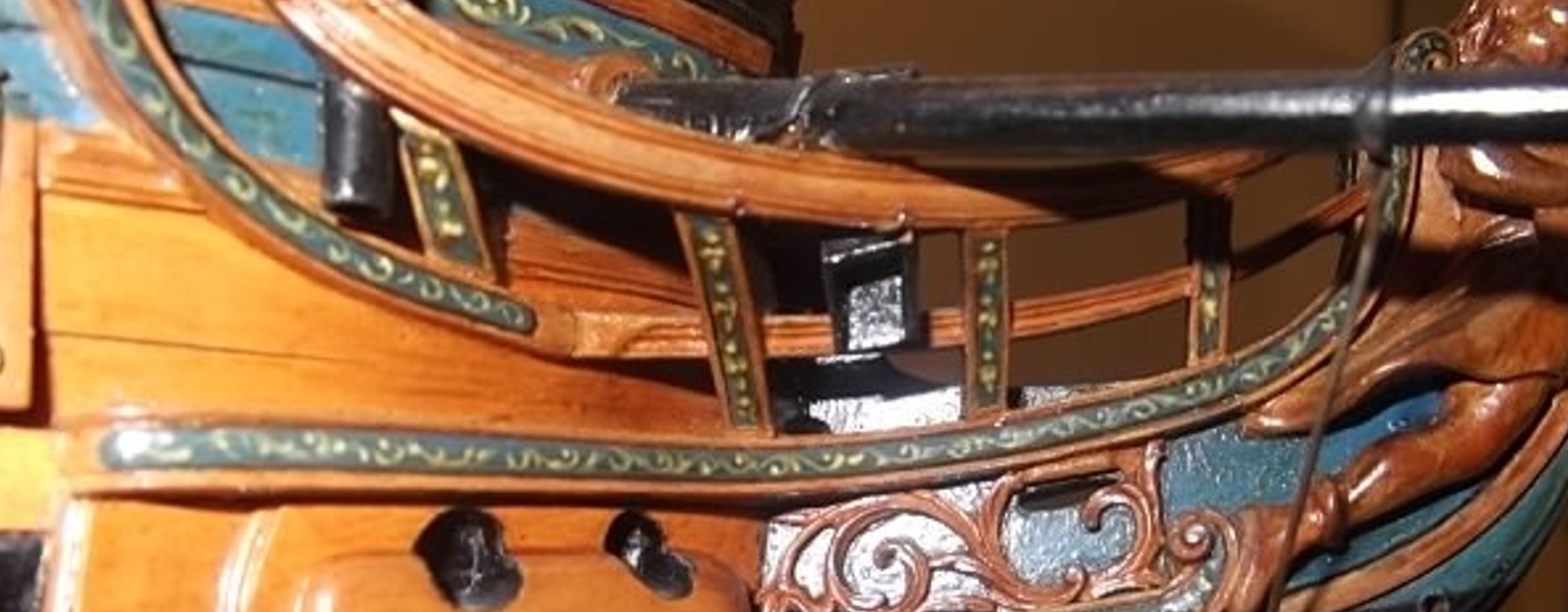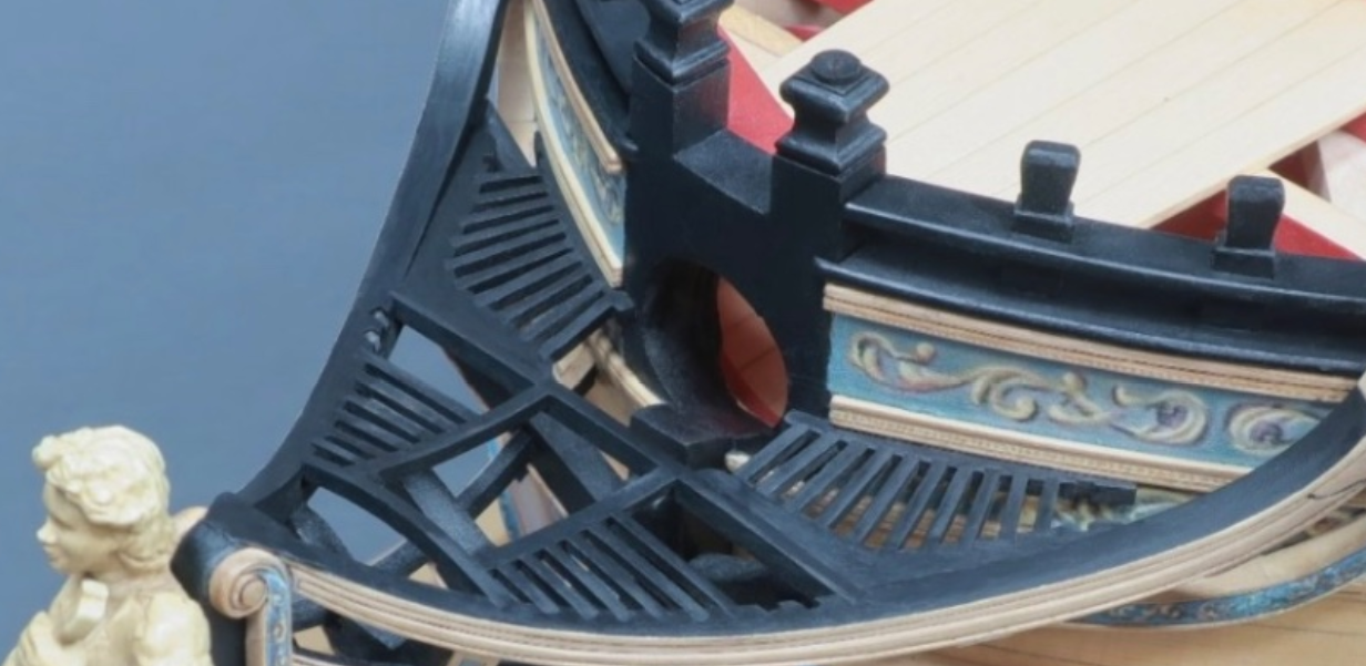 Кстати, может быть коллегам будет интересно как гальюн представляет изготовитель КИТа - Артезания? Я когда в чертежи заглянул просто обалдел - такая там ДИЧЬ! У Амати, например, всё гораздо лучше в этом вопросе. И тут натолкнулся на фото реплики и увидел такую же ДИЧЬ. Видимо, Артезания оттолкнулась от реплики, другого соображения у меня нет.