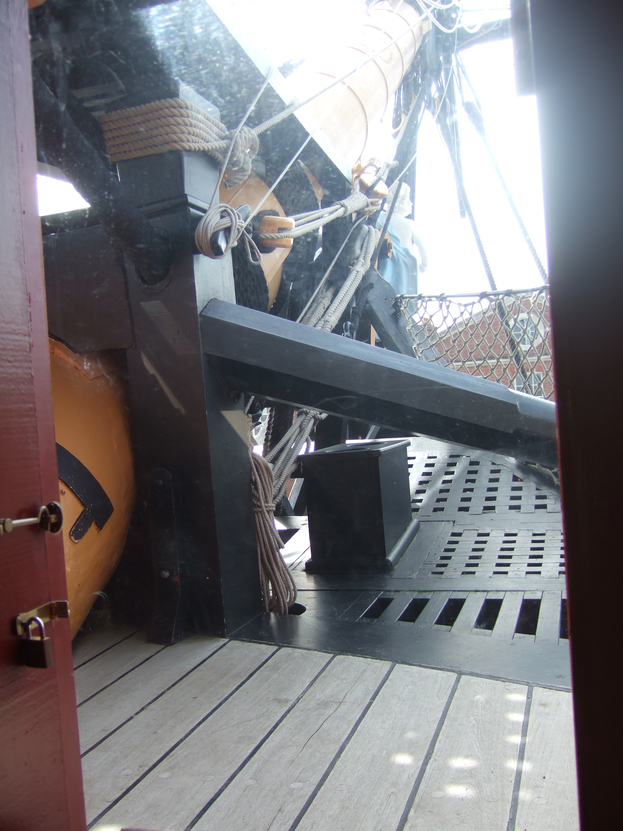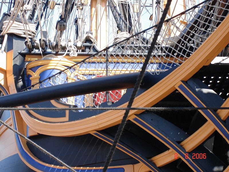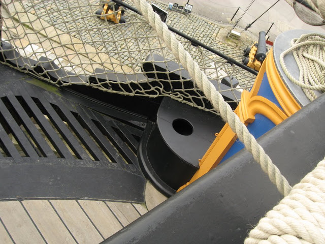 если перенести стульчаки в центр, то, боюсь, там просто реально не будет места для людей. Главная проблема гальюна Баунти, это как раз малая площадь гальюнной решетки. Туалеты по углам как раз самое оптимальное их расположение. Но Баунти- далеко не единственный корабль с отсутствующими фальш-реельсами. Не будем забывать, что, кроме фальш-реельсов, на гальюне были ещё и металлические леера. Защиту против ветра можно было изобразить с помощью натянутой парусины на металлический леер. Интересно, что на той же Виктори фальш-реельс не работает как противоветровое ограждение, так что он скорее имеет эстетическое назначение.