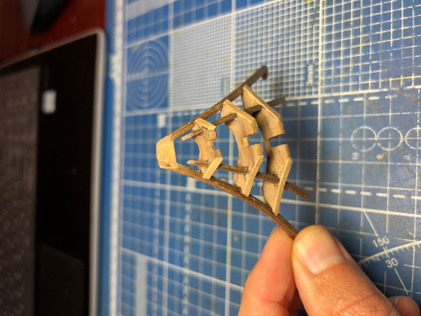 1. Сделал шпангоуты и установил их на княвдигед с небольшим натягом, чтобы они стояли плотно.
