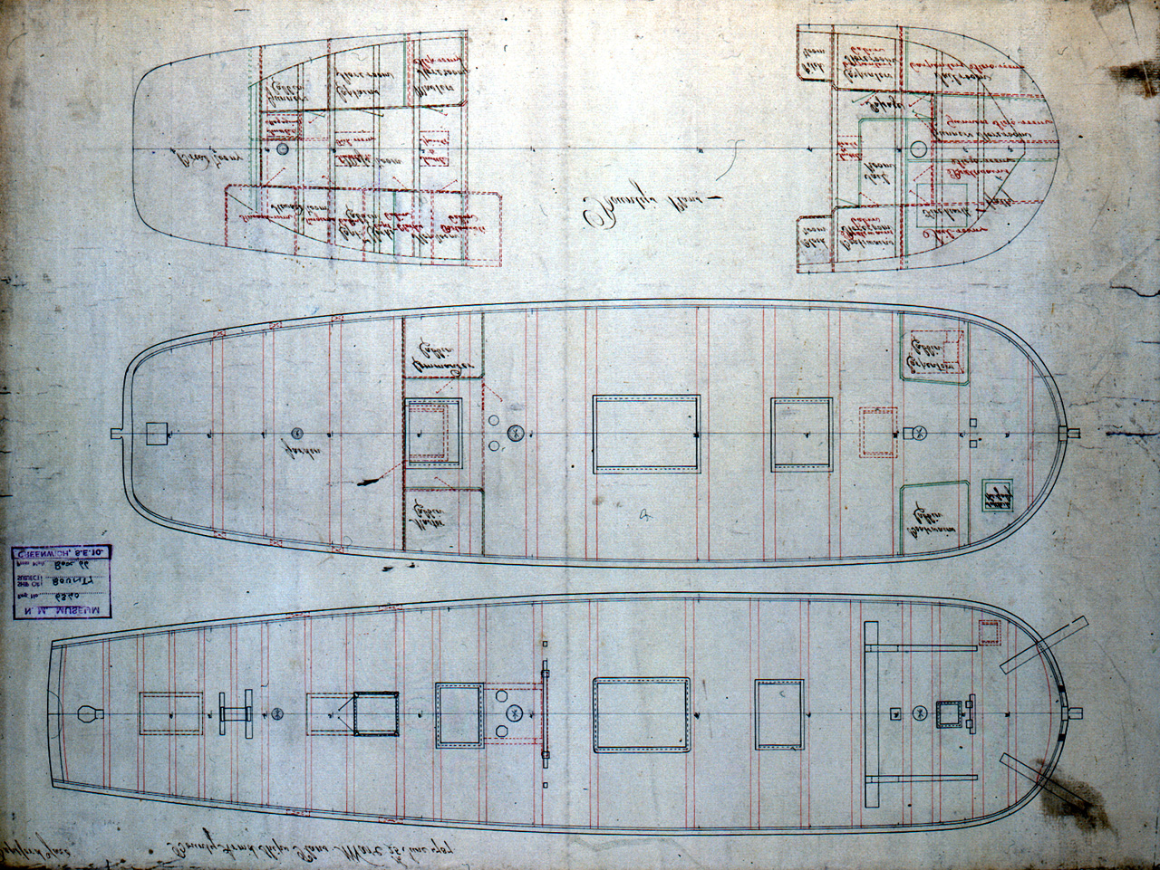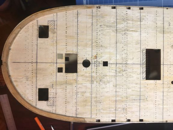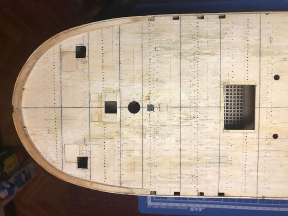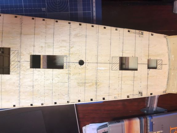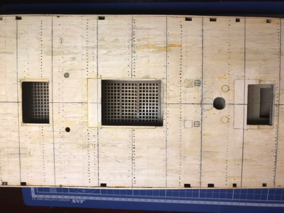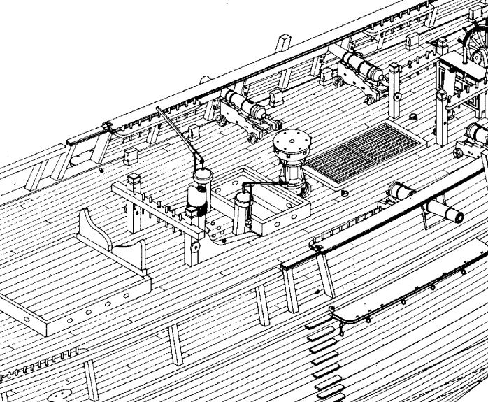 Ещё деталь. Пространство между поясьями в середине, то есть, между люками, комингсами и прочим, заполнялось досками большей ширины, чем остальные доски палубного настила, обратите внимание.