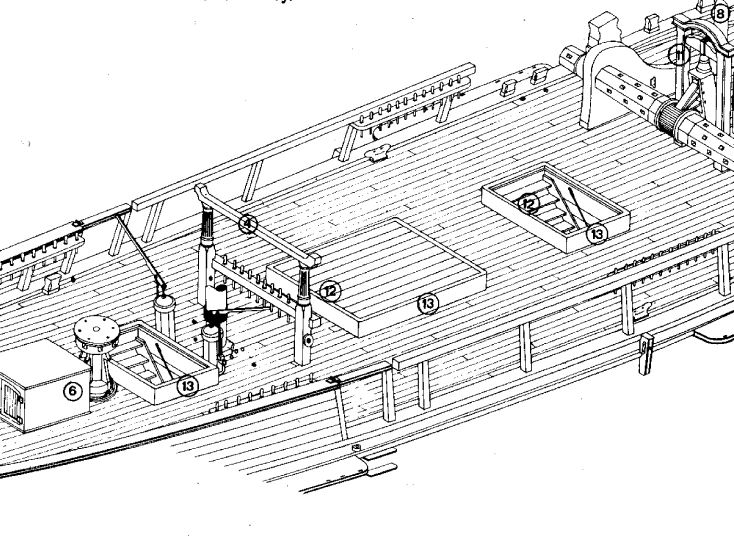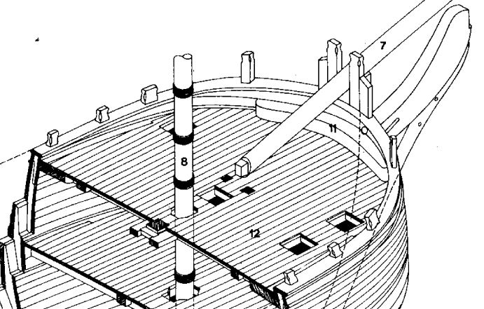 @Игорь Тараканов написал:Александр Голованов написал:а ростровое дерево (если не ошибаюсь). Я так понял, что по креплению битенги уходили вниз и крепились как минимум к двум бимсам (верхнему и нижнему), о ростровое дерево только к одному верхнему бимсу.Стойки для траверза рострового дерева - так наиболее правильно. Обычно эти стойки заодно являлись грот-марса-шкот-битенгами (Марквардт, рис 842). Конечно же, это полноценные битенги с нормальным креплением - марса-шкоты и марса-топенанты - нагрузка приличная. Траверза была разной формы, но чаще всего это было горизонтальное дерево с ровной поверхностью для удобства укладки запасных стеньг шпором, а так же траверзы могли иметь полукруглые выемки для запасных реев. Две стойки траверзов с запасным ростровым деревом образуют так же ложе для шлюпки.