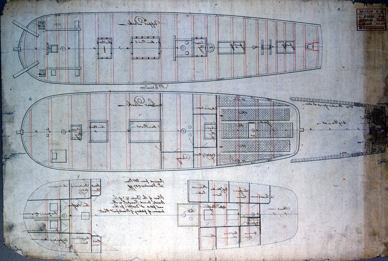 Изменённое сообщение. Короче говоря, перепроверил по музейным чертежам и пришёл к такому выводу. Почему так получилось. Ниже палубы фалстем на архивных чертежах читается на планах палуб, а на продольном разрезе - нет. МакКей прочитал это как отсутствие фалстема над опердеком и зашил одной доской. В этом нет ничего странного. Но! Но на архивных чертежах фалстем всё-таки немного выступает по отношению к гасписам, как паз для обшивки. Получается, что - да, в данном случае обшивка вставала встык к фалстему и крепилась на недгедсах. Но оголённый фалстем намекает на последующую установку брештука над опердеком (под этой палубой брештук на музейных чертежах показан). Но брештук куда-то потерялся.