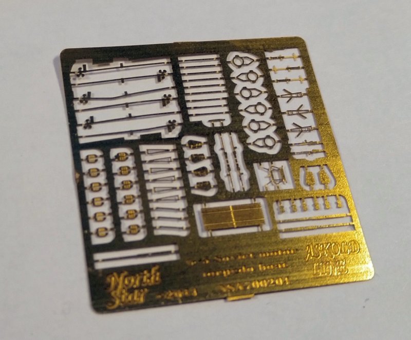 После полутора часов поисков деталей с лупой, смог таки поставить травленые горизонтальные стабилизаторы торпед не потеряв ни одного. Теперь очередь вертикальных... детальки 1х1мм...