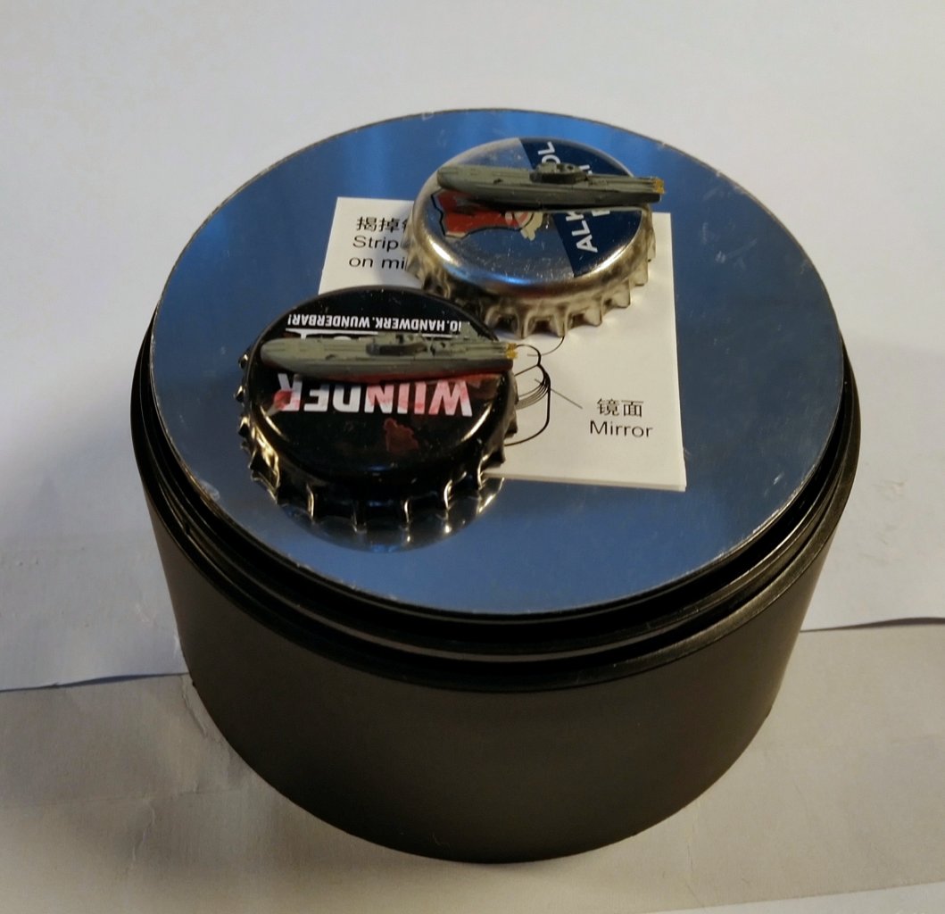 Лавка поместилась на подставку, а вот для Спита пришлось подложить зеркальце бОльшего диаметра - но зато и нижние поверхности осмотреть можно.