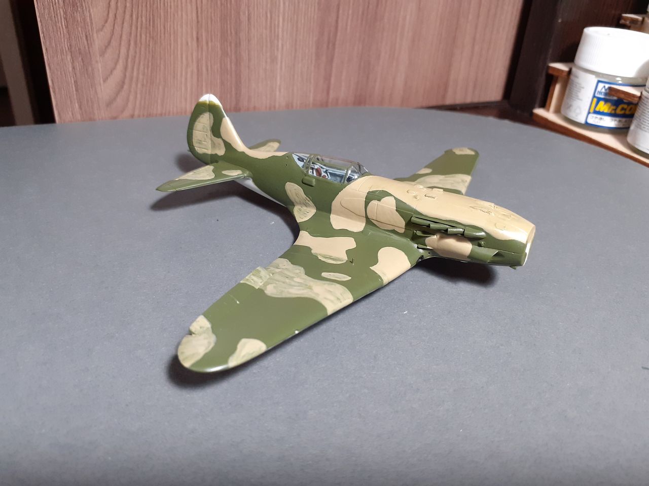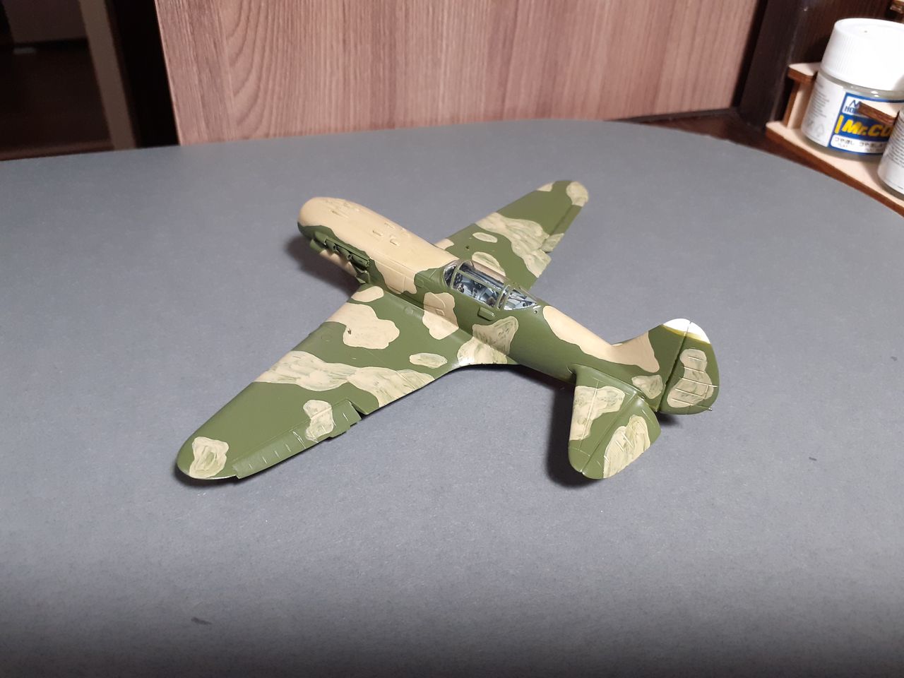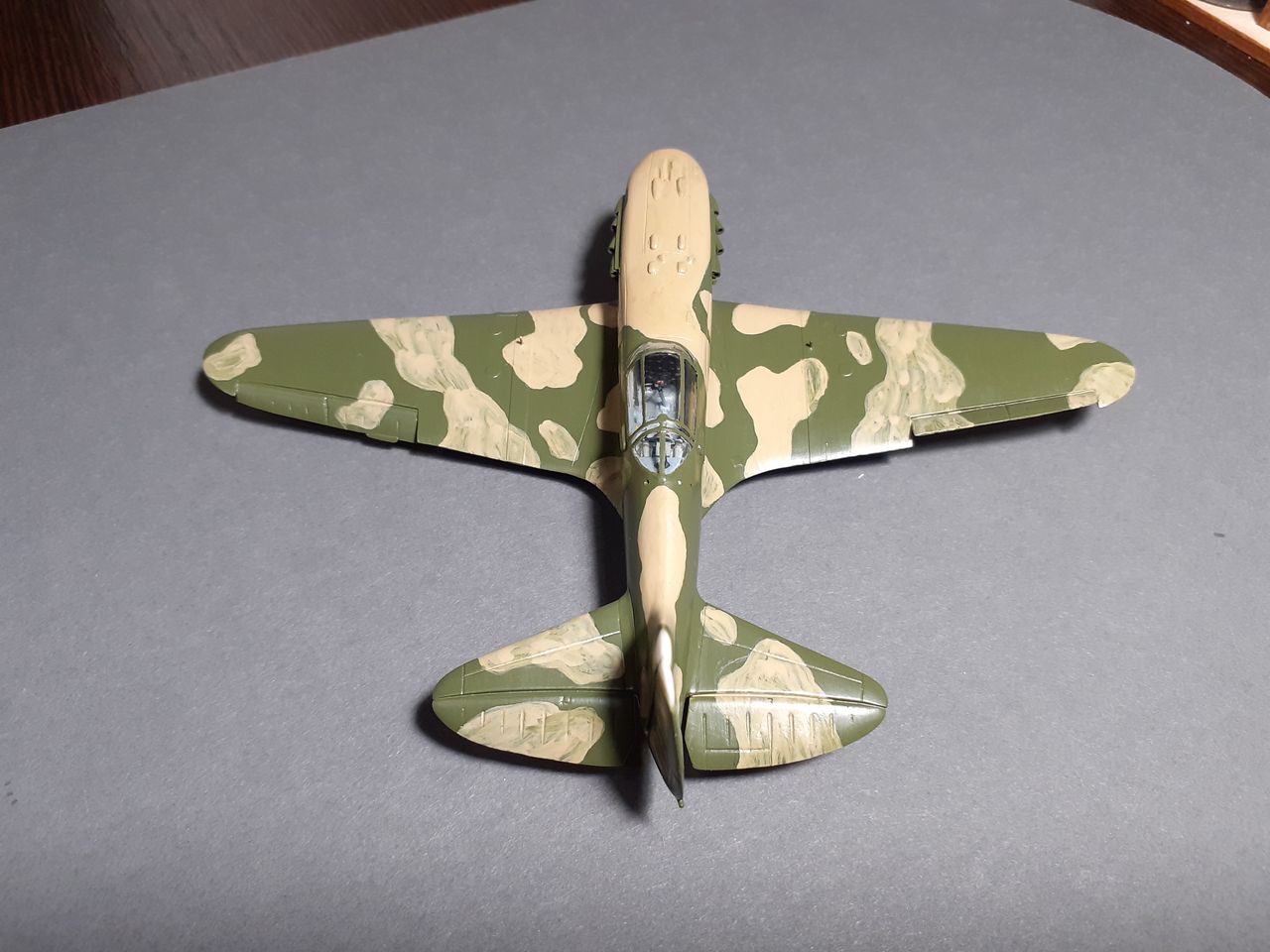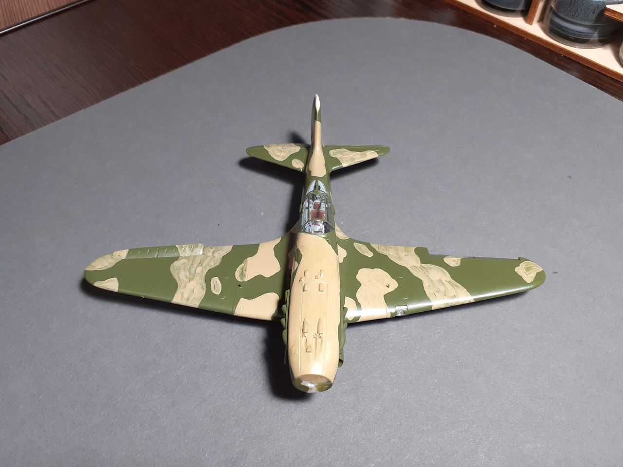 Выкрасил МиГ в базу, теперь дело за камуфляжем. С песочными пятнами определился, это носовая часть, гаргрот и верхние поверхности крыльев до стяжек.