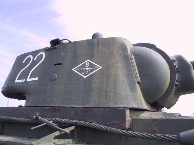 Не совсем понятно, что планируется делать в кормовой части башни: Trumpeter здесь даёт в общем-то характерный вариант пулемётной установки, подтверждённый фото. Детально можно подглядеть на фото абрединского КВ,