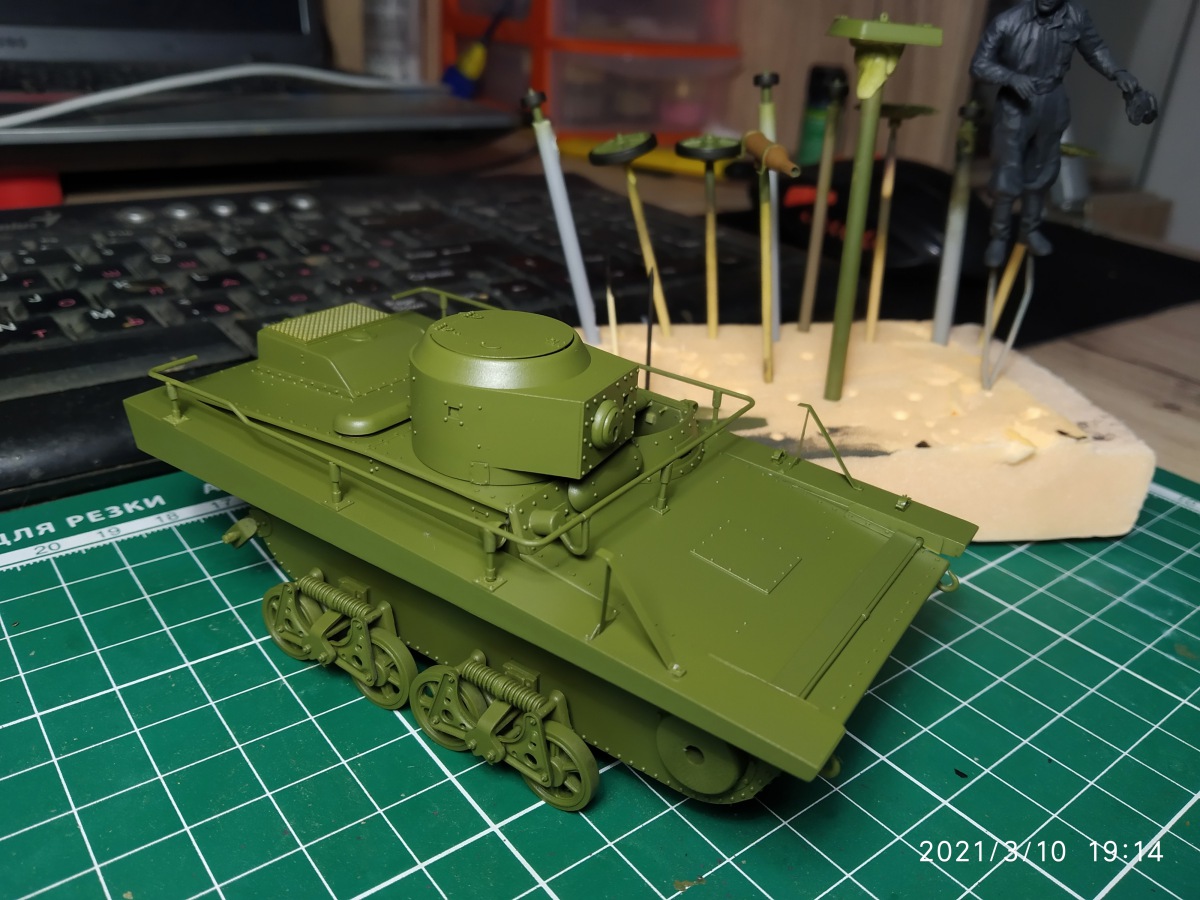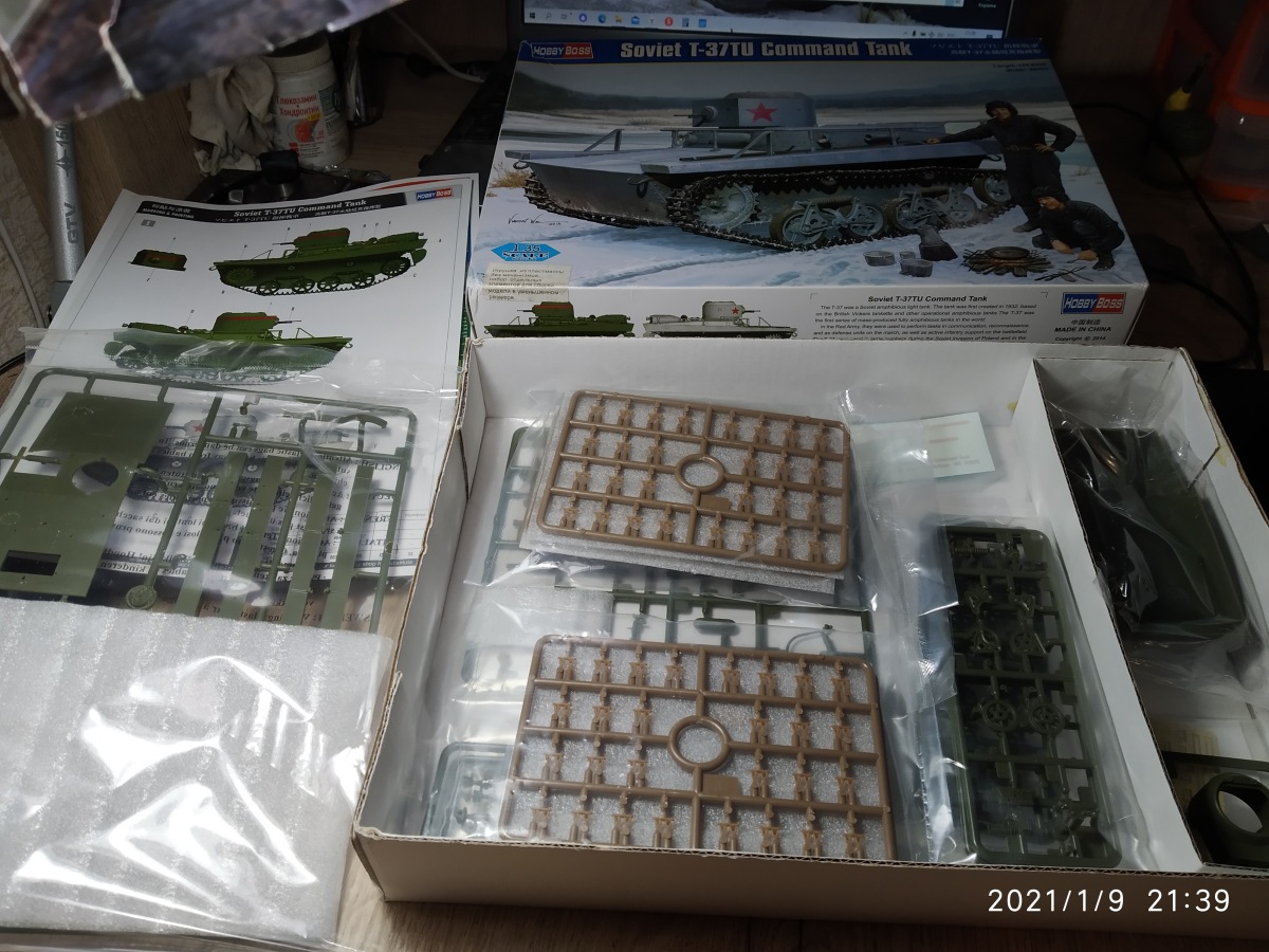 Да, кстати, Т-37 с радиостанцией имел обозначение Т-37А радийный или Т-37РТ, обозначение как на коробке Т-37ТУ должен был иметь танк телеуправляемой группы, разработка аппаратуры велась, но с Т-37 не сложилось. Телеуправляемый танк был сделан на базе Т-38, а потом идею довели до практической на Т-26. Так что с названием на коробке китайские товарищи немного промахнулись...