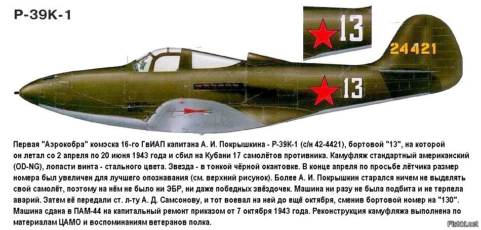 @Andrey Stan написал:№13 был именно у "первой Кобры" Покрышкина и это был Р-39Д-2. никаких "материалов ЦАМО" касательно К-2 нет, посему я считаю такой вариант просто одной из версий, причем не подкрепленной (в отличии от 20-мм пушки в мемуарах)