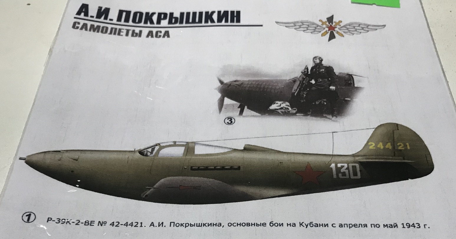 Upd: Поскольку при подготовке к стройке я был введён в заблуждение изготовителем декали, а также неподтверждёнными боковиками, блуждающими в сети, то, в том числе и благодаря наставлениям коллег, строиться будет модификация P-39N-5, SN 219158. То есть, не первая, а последняя кобра А.И. Покрышкина.