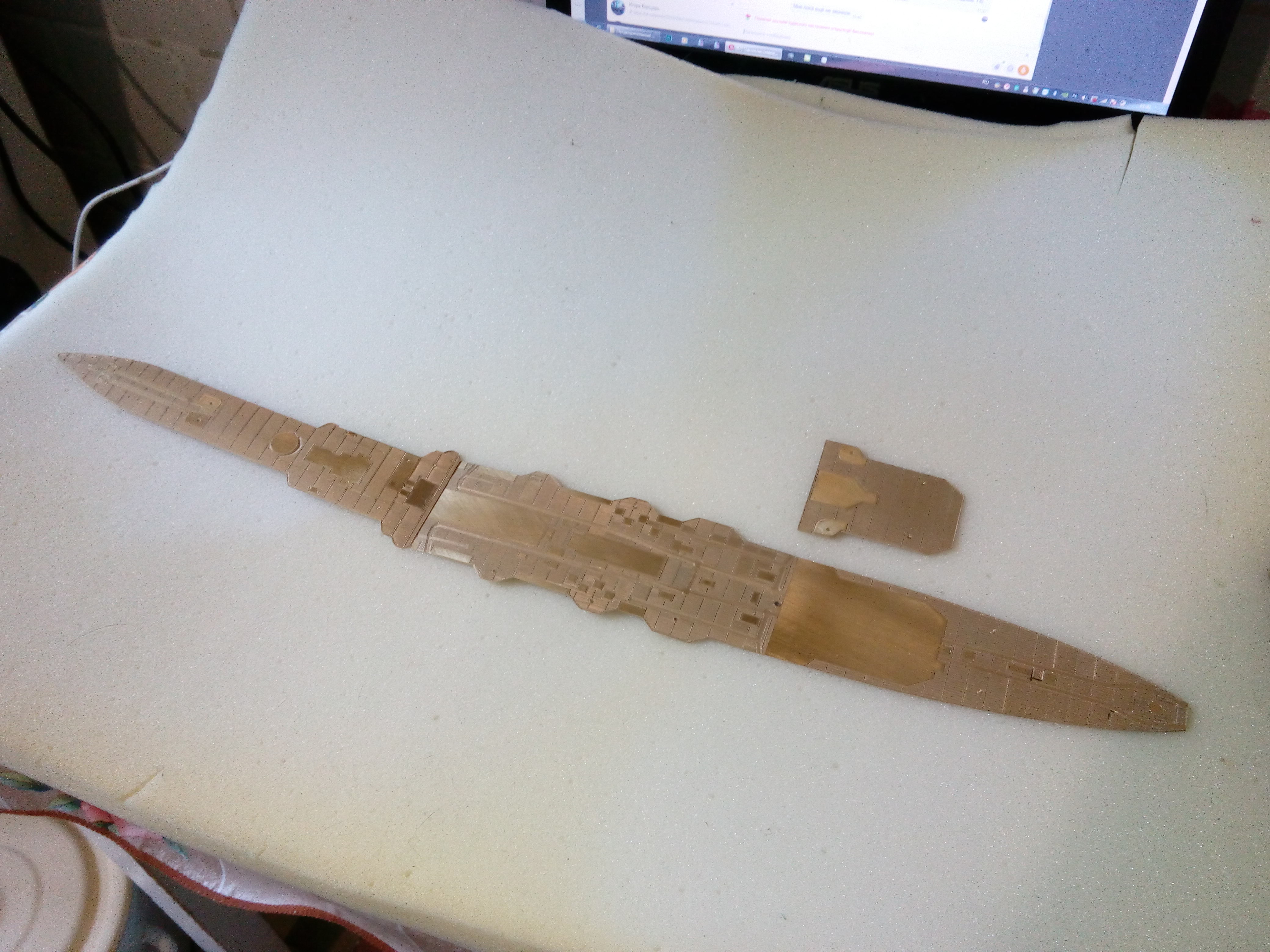 @Антон Празукин написал:Ах, да! Опять сроки переносятся! Ок, 15.01.2021г. - дата закладки! Но задел уже некоторый имеется в виде деревянного настила из латуни. Конечно данное решение еще не окончательное. Скорее всего палуба будет из шпона с нанесенным рисунком досок с помощью лазера.