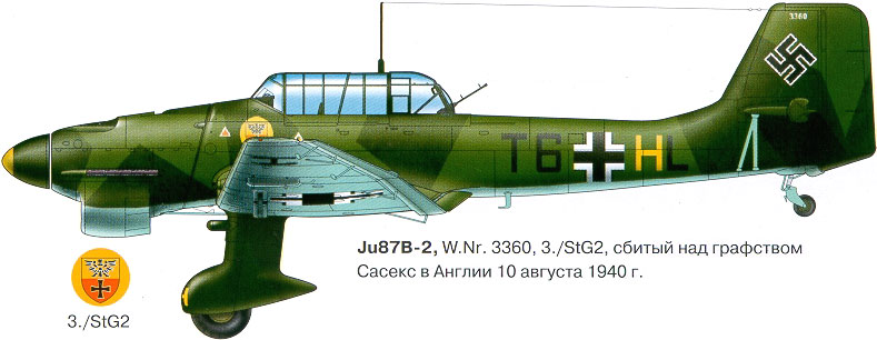 Я в немцах полный ноль(как и во всём остальном), но 3./StG1 это I/StG1, а I/StG1 с августа 40-го входила в состав VIII-го воздушного корпуса. А VIII-ой воздушный корпус входил в состав 3-го Воздушного флота, который принимал непосредственное участие в ББ. Вот такая получается цепочка (хотя, возможно, как вариант, что конкретно 3./StG1 оставалась всё это время Норвегии)