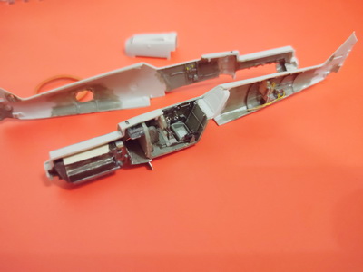 3. Боковины фюзеляжа в районе кабины сточены изнутри, создан силовой набор. Исправлен пол и передняя перегородка. С нуля сделаны боковые элементы кабины. Некоторые элементы (педали, механизм подъема сиденья, направляющие за сиденьем) - эдиковские. Сиденье и ручку пока не устанавливал.