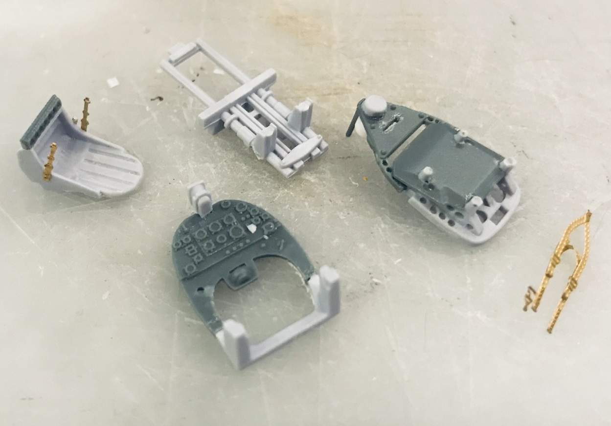 Нравятся мне эдуардовцы. В частности, своим подходом к созданию унифицированных наборов. Вот и теперь заменил их деталями некоторве части кокпита: шпангоуты, на которых висят кресло и приборка, бронеспинку...