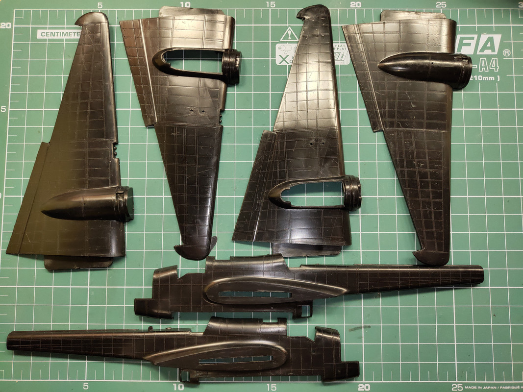 Модель неплохая, остекление прозрачное и не очень толстое (хотя интерьер я буду воспроизводить постольку-поскольку, ведь его практически видно не будет, а сусликов я ловить не люблю. В планах - перерезать расшивку, накатать клёпку (правда, еще думаю, чем размечать чёрный пластик). Створки бомболюка открывать не буду, а створки ниш шасси - сделаю из пивной жести, скорее всего (как раз и потренируюсь).С декалью - тоже пока что думаю, есть идея использовать родную, из набора, но нигде не могу найти или профиля, или фото этого борта. В общем, пока что - мыслей много.