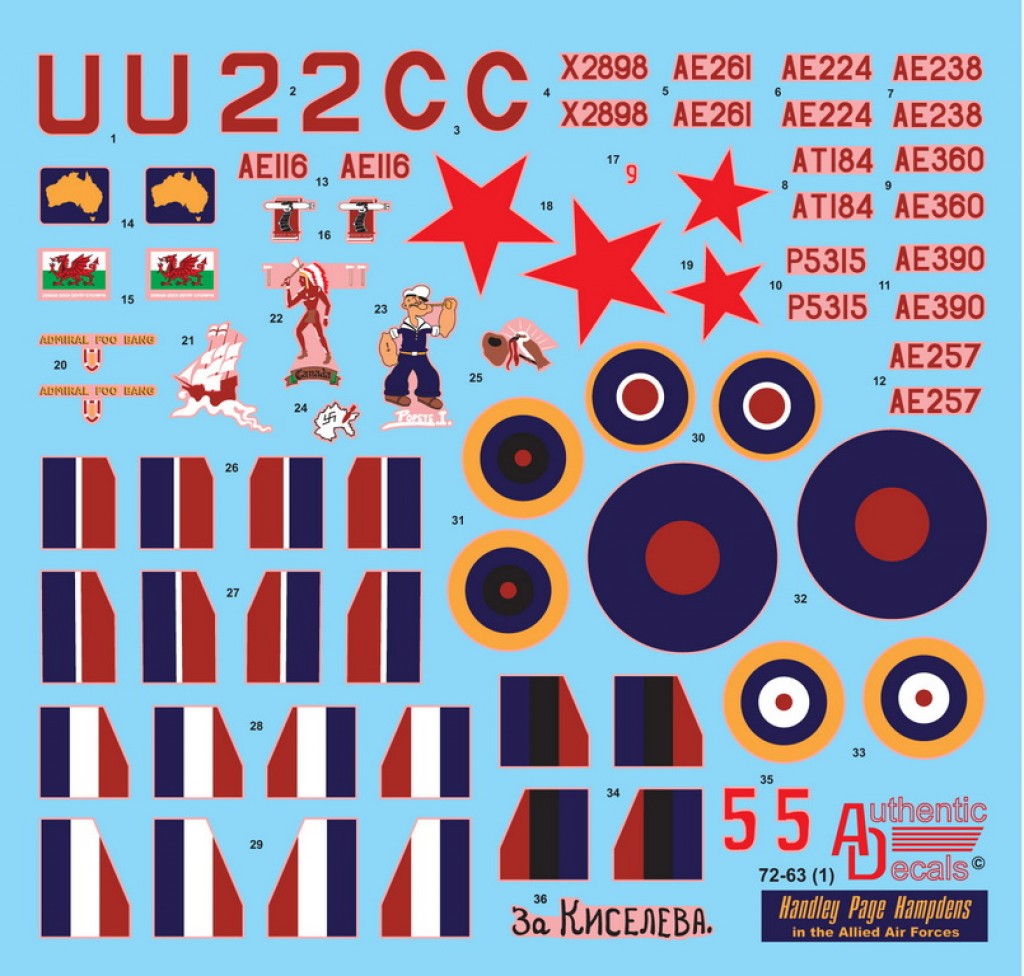 Всем спасибо за обсуждение, я тоже с утра кое-что полистал, и понял, что декаль борта из набора не подходит. Пока озаботился поиском Authentic Decals, вдруг, найду. Кстати, насчёт литературы, взял информацию из статьи с дружественного сайта: http://scalemodels.ru/articles/3413-obzor-Valom-1-72-H-P-52-Hampden-TB-Mk-I--povest-o-druge.html