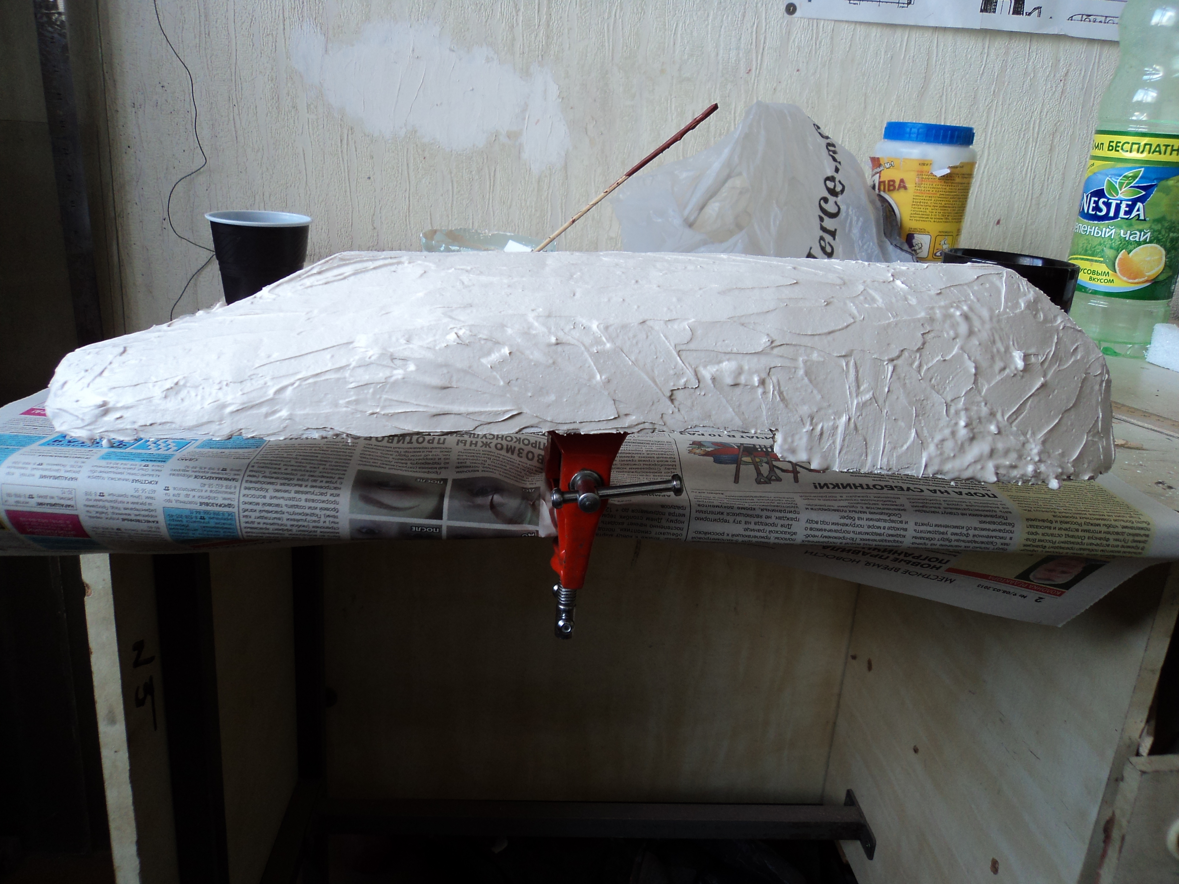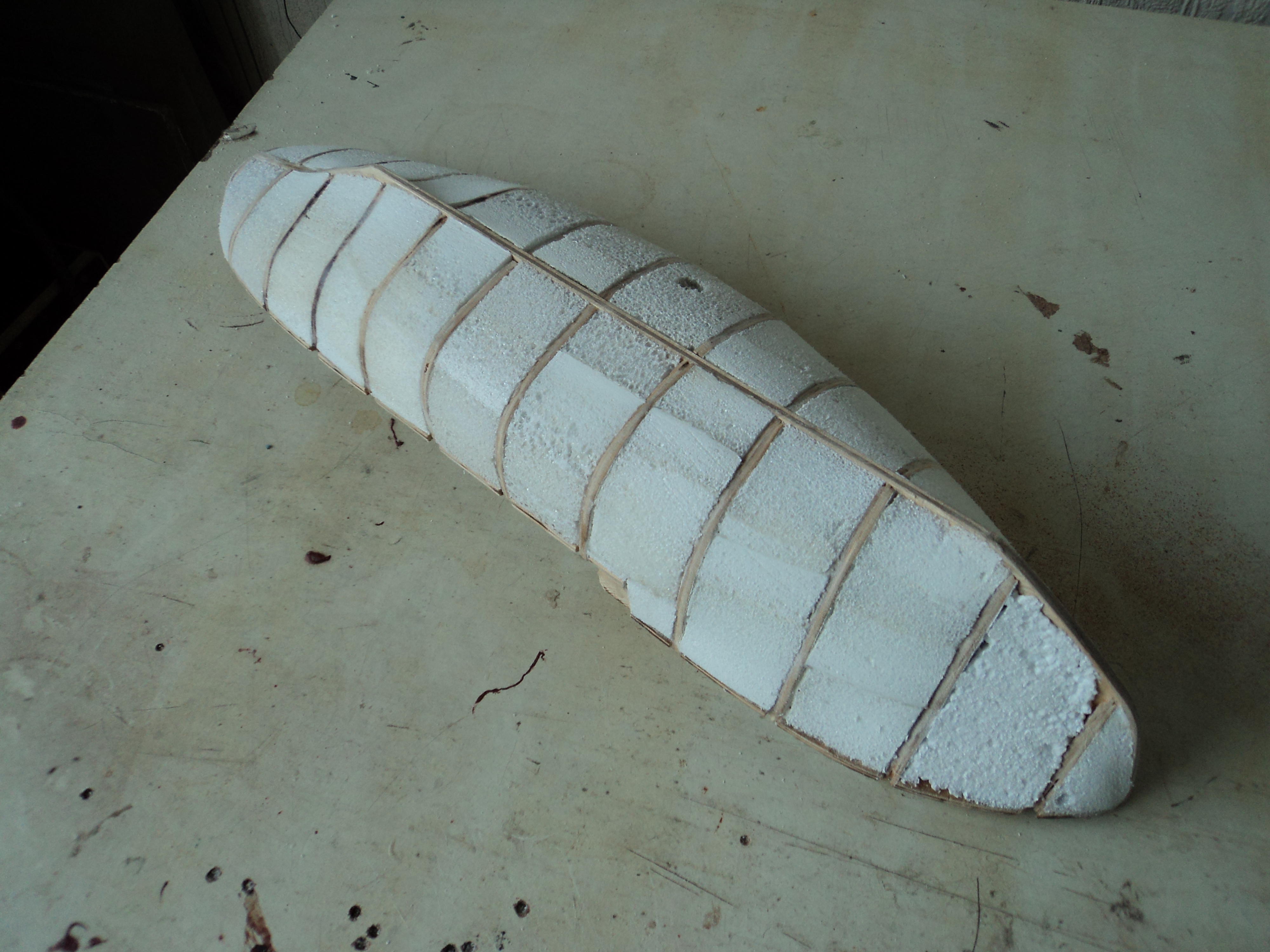 Болван корпус набирался по классической технологии: ДП+шпангоуты,шпации забивались пенопластом на ПВА...