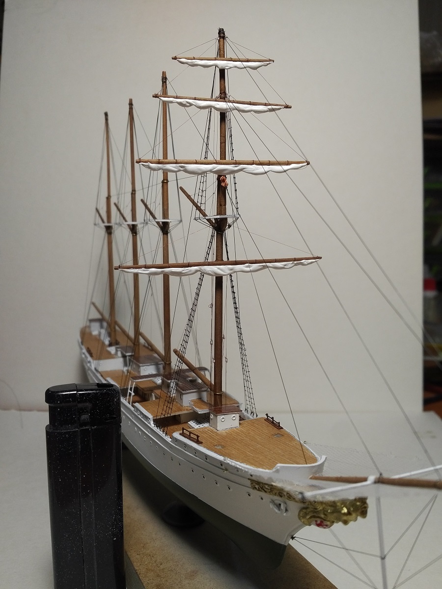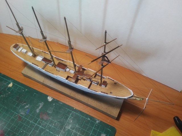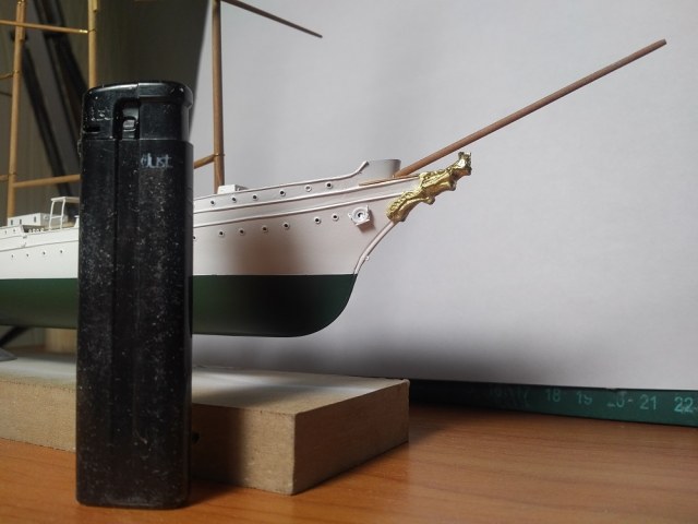 Добрый день. Давным давно приобрел этот замечательный набор и постоянно откусывал от него литники (донор полистирола). Пока занят на работе, решил отложить начатый проект лайнера до сдачи объекта, а зимние вечера длинные достал этот набор и начал возиться. Инструкцию не нашел, начал собирать по фото и чертежам всяким, а когда нашлась инструкция, понял, что неправильно я ее собираю, но что то вырисовывается.
