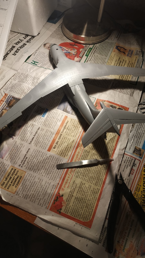 На данный момент корпус почти собран, осталось только доделать крылья и шасси. Так как первая модель, очкую рисковать, не посоветовавшись с асами своего дела. Завтра приедет маска для стекла, нужно будет начинать грунтовать самолет. Дайте совет по этому поводу. Есть ли какие-нибудь нюансы? Грунтовку буду использовать от фирмы Tamiya (спрей, белый цвет).Заранее спасибо!
