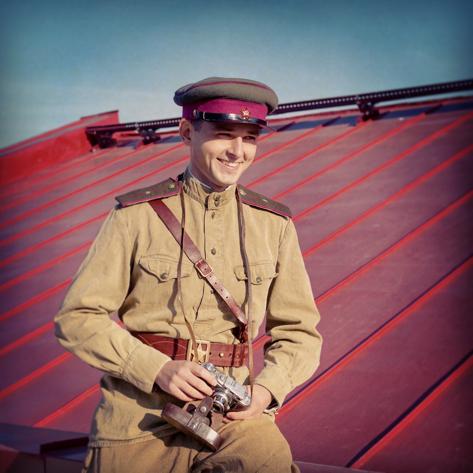 Блин, чего ж "фотокор" такой "люто салатово-зеленый"? Как то дичковато смотрится... или такая цветопередача на фото? Портупейный ремень где, под погон? Раз с кобурою и офицер... Шапку - светло серым или коричневым, ну уж ни как не зеленым... Да и в Мае 45го у старлея (или он даже капитан? плохо вижу) на груди уже вполне уместен какой-никакой "иконостас". Человек до Берлина дошел!
