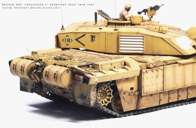 На корме у этого Челленджера 2 навешано столько всякой всячины и всё это такое фактурное, что напоминает работу над башней Т-90А от МЕНГа.