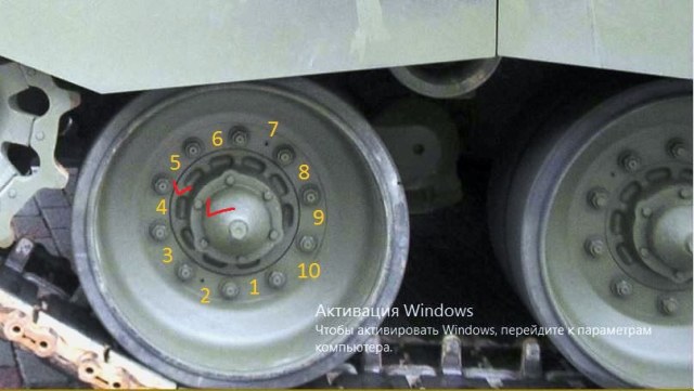 каждый каток условно разбит на 10 секторов, здесь 10 крепежных гаек и 9 углублений, десятое не сделано, но под него как бы оставлено место.