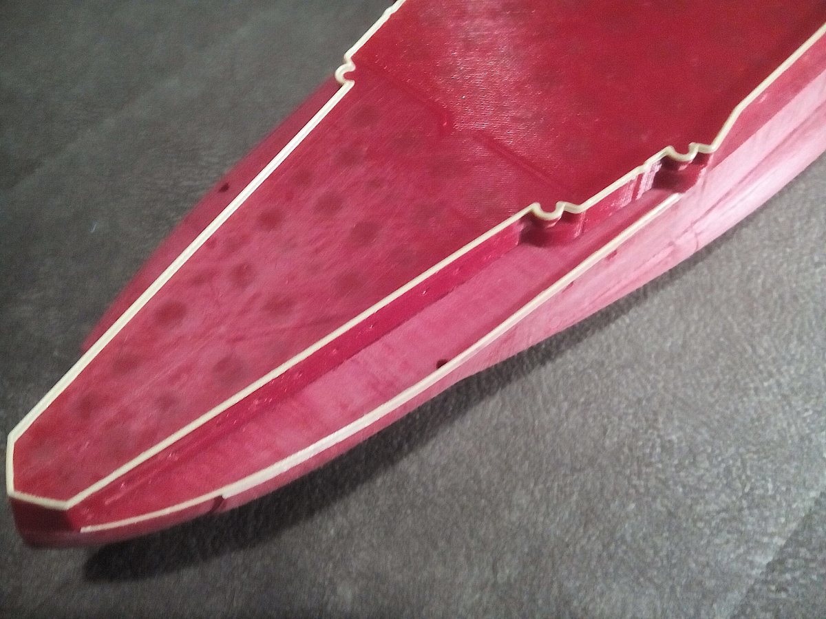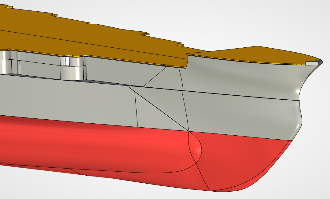 Да, если хорошо присмотреться - это не ошибка, верхнии линии слегка раздваиваются. Небольшая погибь.Интересно, шпоновая палуба делалась с учетом ее?