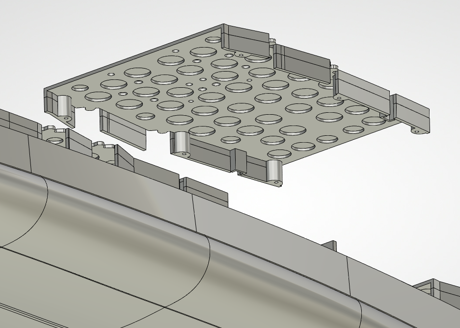 Скорее всего нужно разбить некоторые секции еще и горизонтально, ниже блистеров и печатать горизонтально нижние