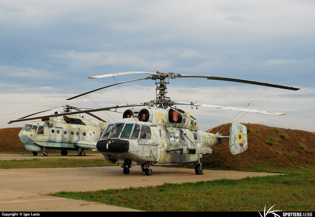 И так пройдемся по прототипам, временными рамками ограничиваю машину до 2010г. До этого момента в ВМС Украины числились 4 Ка-29. В момент моей службы машины насколько мне известно уже не летали, а были на консервации, хотя и в неплохом состоянии. Насколько я знаю, им нужно было продлевать ресурс, с этим было как всегда туго в плане финансирования, так же играл тот факт, что постоянно висел вопрос, а нужны ли они вообще? Несколько Ка-27 в летном состоянии поддерживалась (ПС и ПЛ) по причине наличия в составе «Сагайдачного» с вертолетным ангаром на борту, также было несколько летающих Ми-14 (ПС и ПЛ). С Ка-29 было все сложней. Бортовые номера у этой 4ки Ка-29 менялись, последние были желтые 30, 31, 32, 33, в 90х и начале 00х встречал фото с красными б.н. 16, 22 , 23 и 79