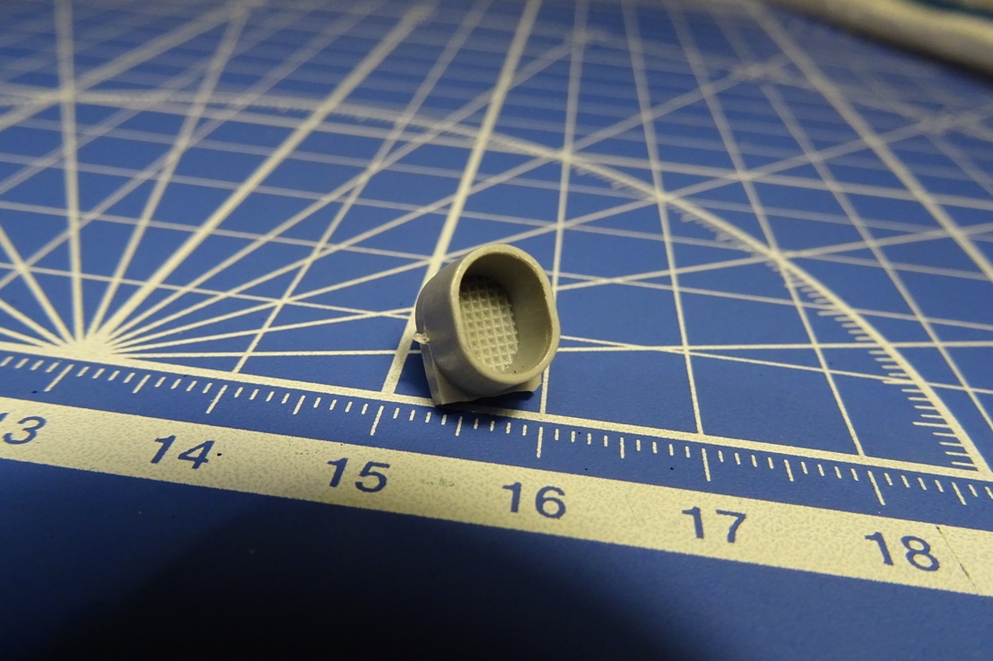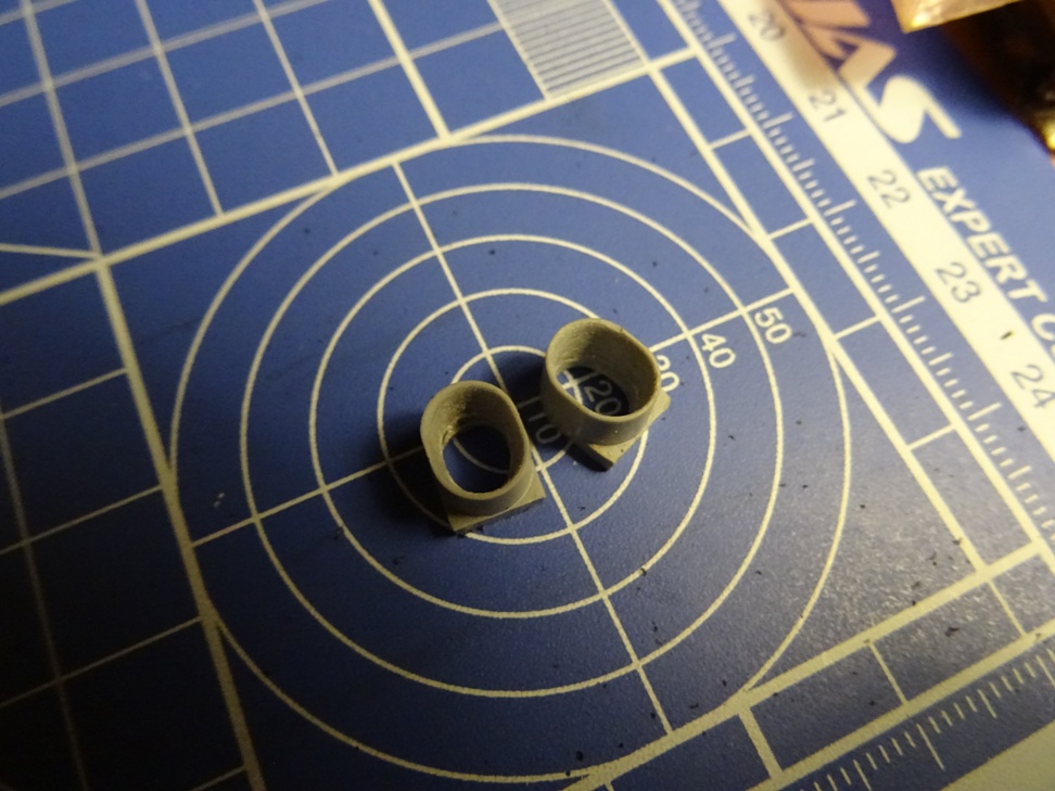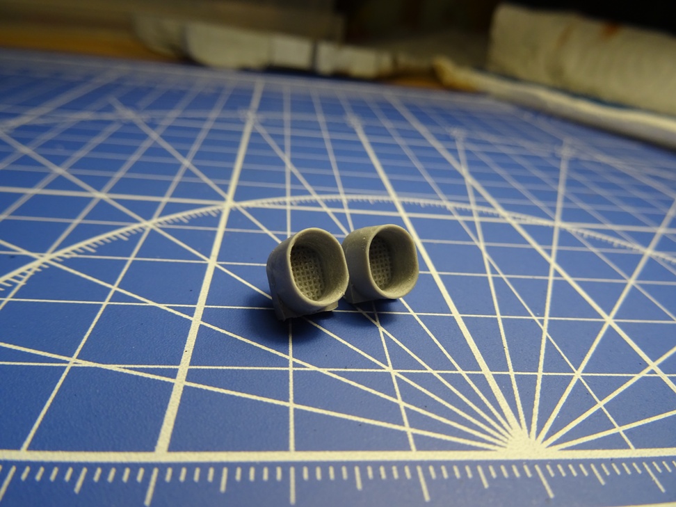По выхлопным трубам принял следующее решение, выточил решетки на сквозь, срезал наконечники от шариковых ручек выточил серединки и приклеил их с задней стороны. Пришлось стачивать фюзеляж изнутри, немного перестарался до дырки, придется потом шпаклевать. Получилось вроде намного лучше чем было.