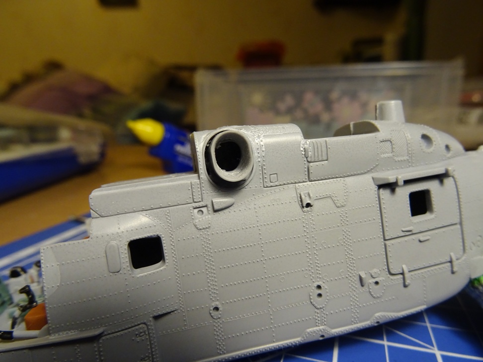 Ярослав,выхлоное устройство у современных вертолётов достаточно сложное.Там не просто дыра с выпускного коллектора.Через выхлопную трубу проходит вал редуктора и ещё много чего видно.Так на всём семействе Ка-27-29-50 и на Ми-8-17-24-35.Чтобы избежать лишней работы можно прикрыть всю эту красоту крышками.