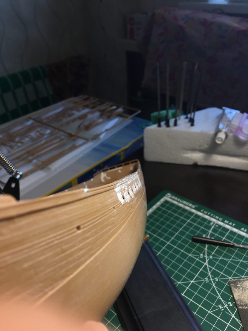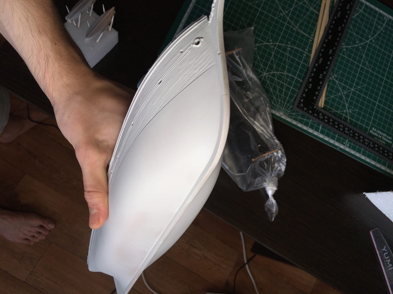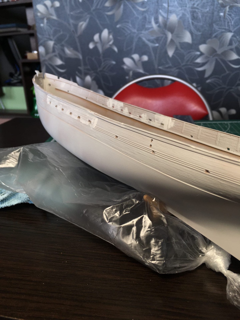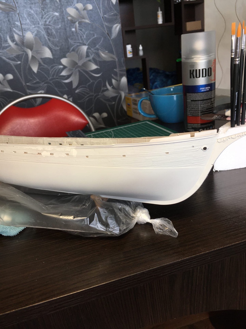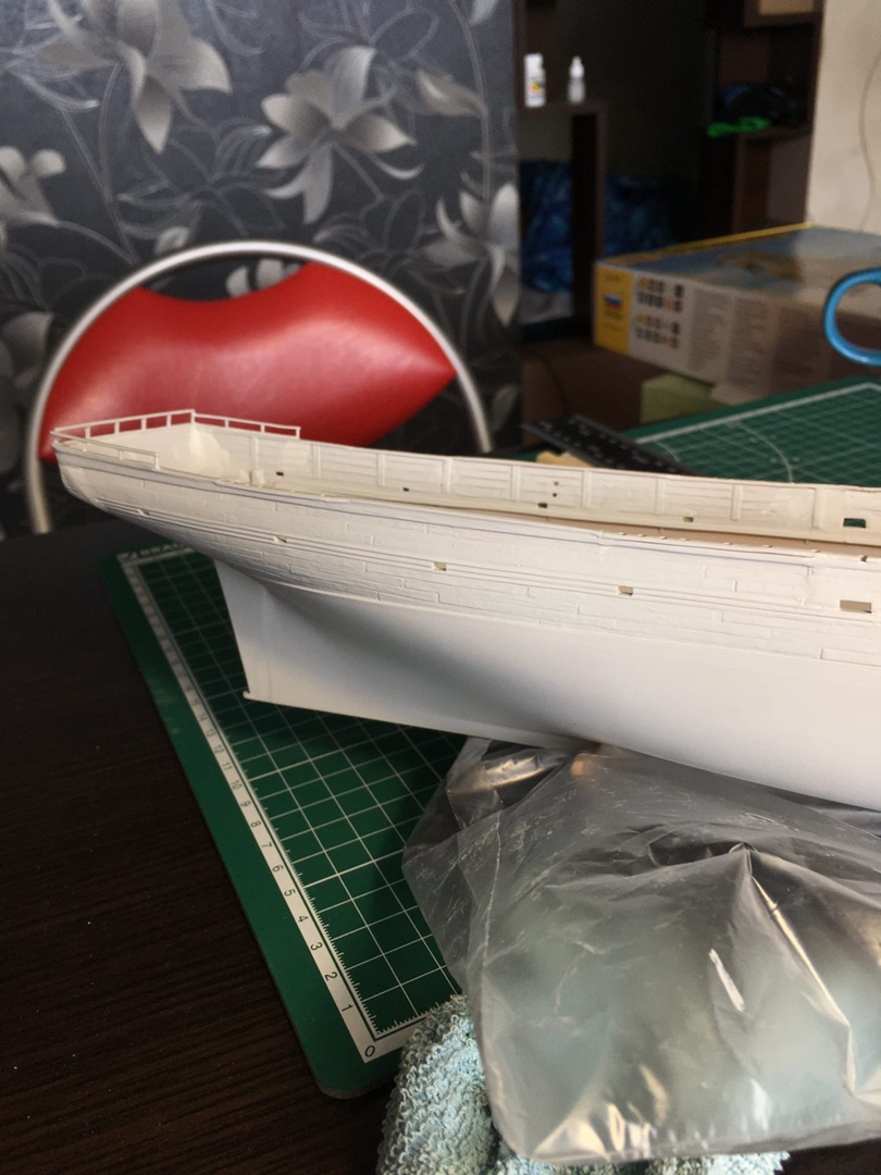 1. Шпатлевку не знаю какую взять. Сейчас есть только белая полимерная глина (фотки прилагаю). Планирую делать из нее наполнение для палубы. Подскажите, она подойдет для замазывания щелей и неровностей? Понимаю, долго затвердевает и все такое. Еще буду рад, если посоветуете что-нибудь в замену модельной шпатлевке.