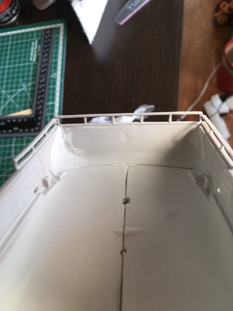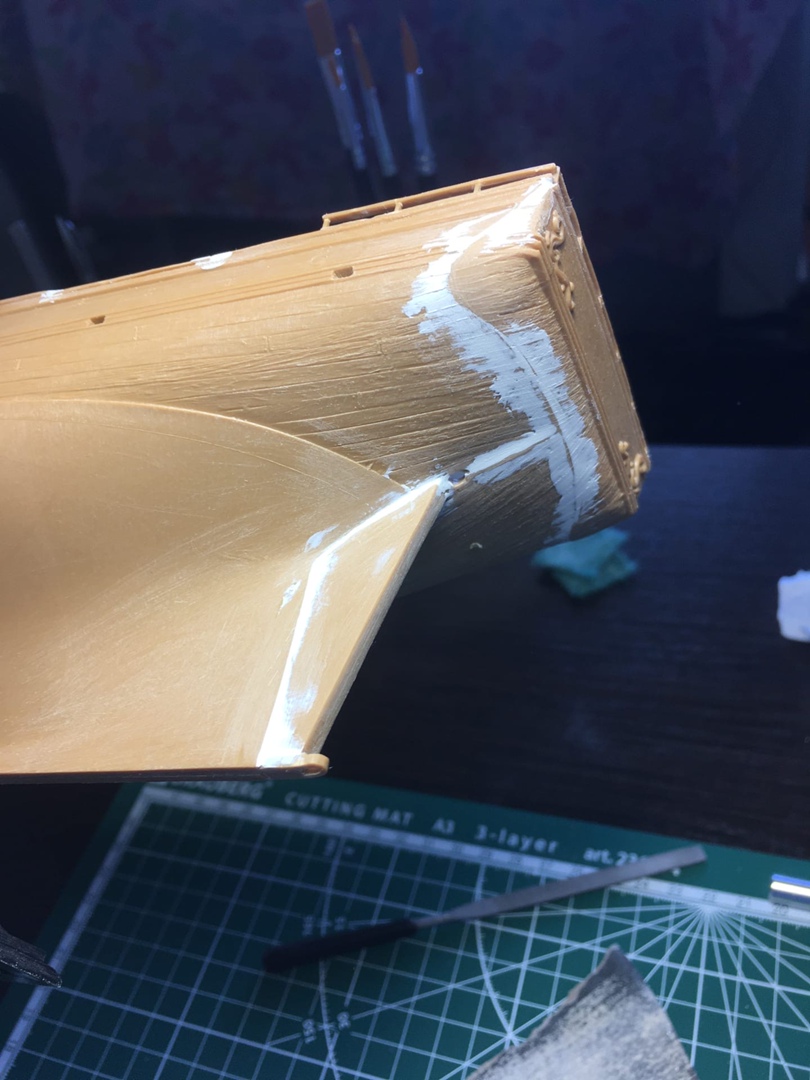 Клею основные детали корпуса. Наношу шпатлевку, шкурю, дорабатываю. Шпатлевки приходится много тратить. Тут все сплошная "щель".