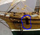 Насколько я понимаю в парусниках, эта деталь служит для защита борта от лап якоря при его подъёме. Логически правильным будет размещение - справа-как по инструкции.