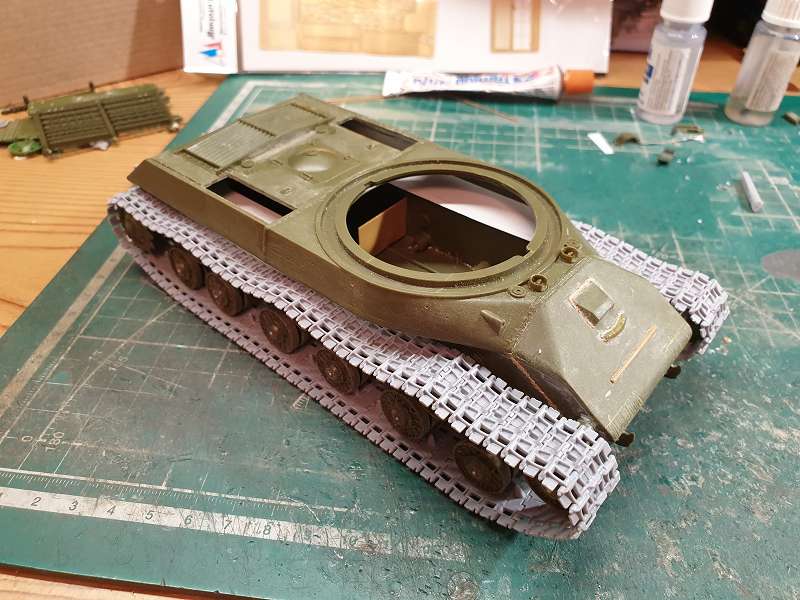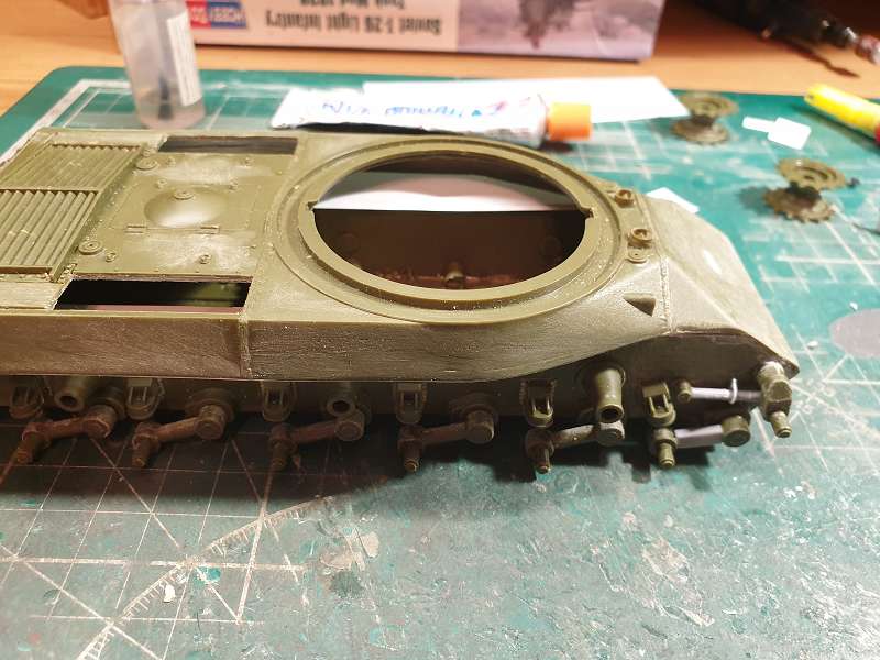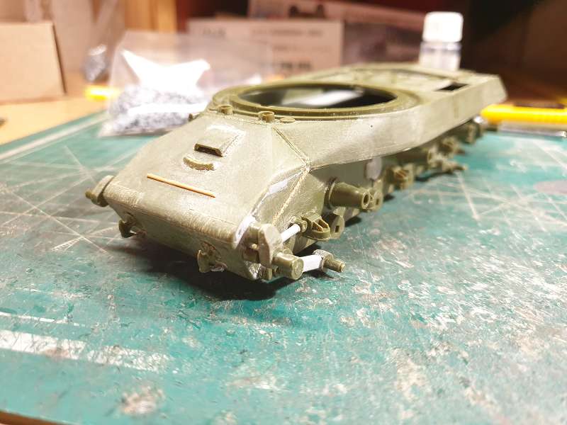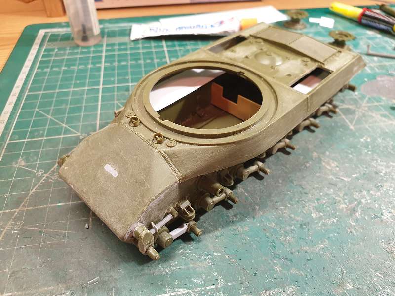 Корпус почти готов. С башней от Миниарм вышла козья морда. В трех магазах были в наличии, собрался покупать - пропали. Во всех трех. Ждать под заказ, может не хватить времени до окончания сроков. Попытаюсь получить что-то похожее из башни коробочной.
